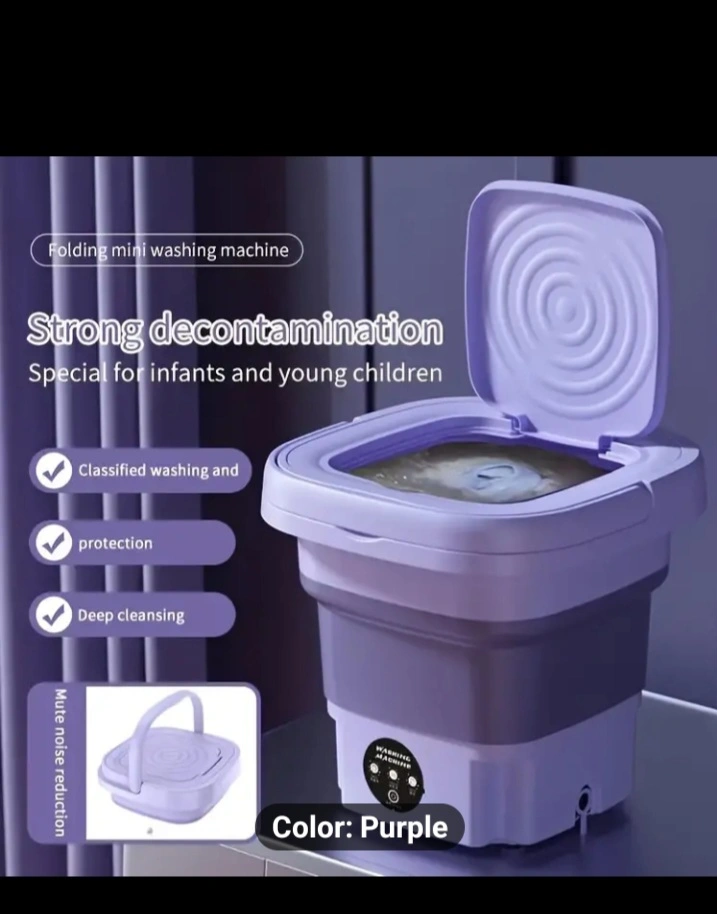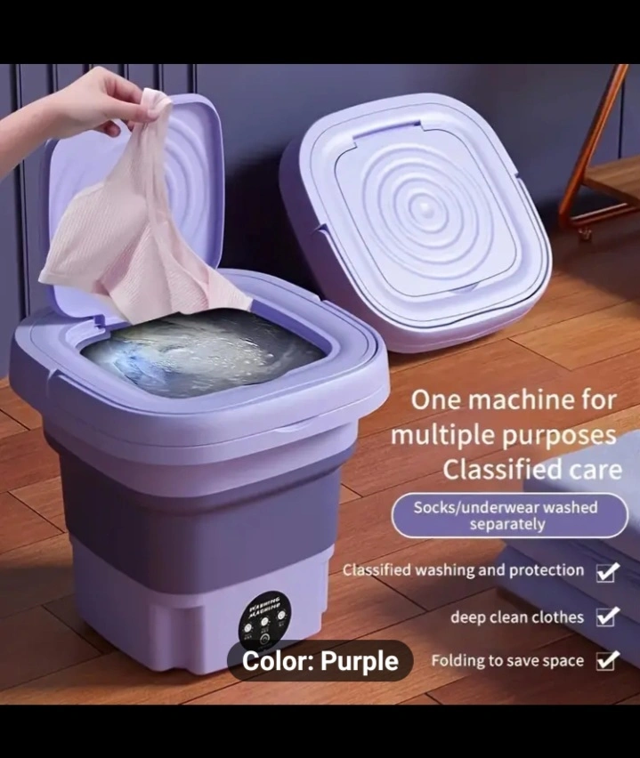 92Small portable washing machine. Folds for easy storage. Purple.