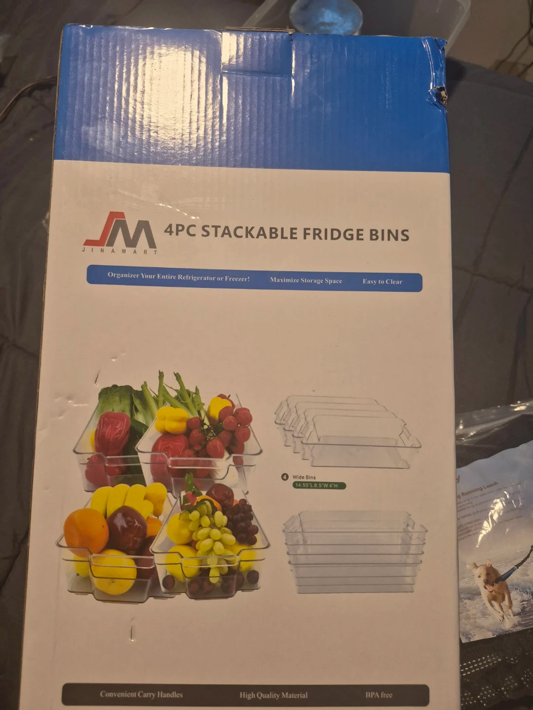 Selling a brand new set of Jinamart 4PC Stackable Fridge Bins! These clear plastic storage bins are perfect for organizing your refrigerator or freezer. They are BPA free and easy to clean. The dimensions are 14.55" L x 8.5" W x 4" H