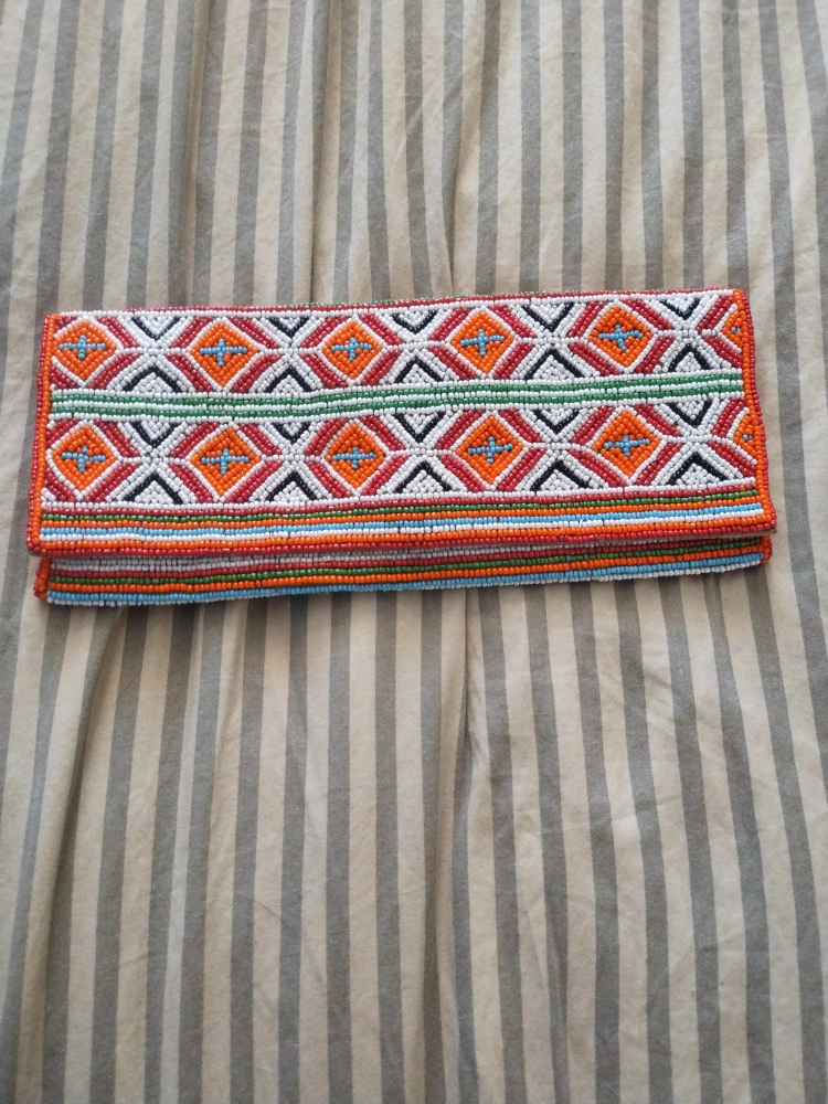 1000+Beaded clutch with geometric pattern. Multicoloured.