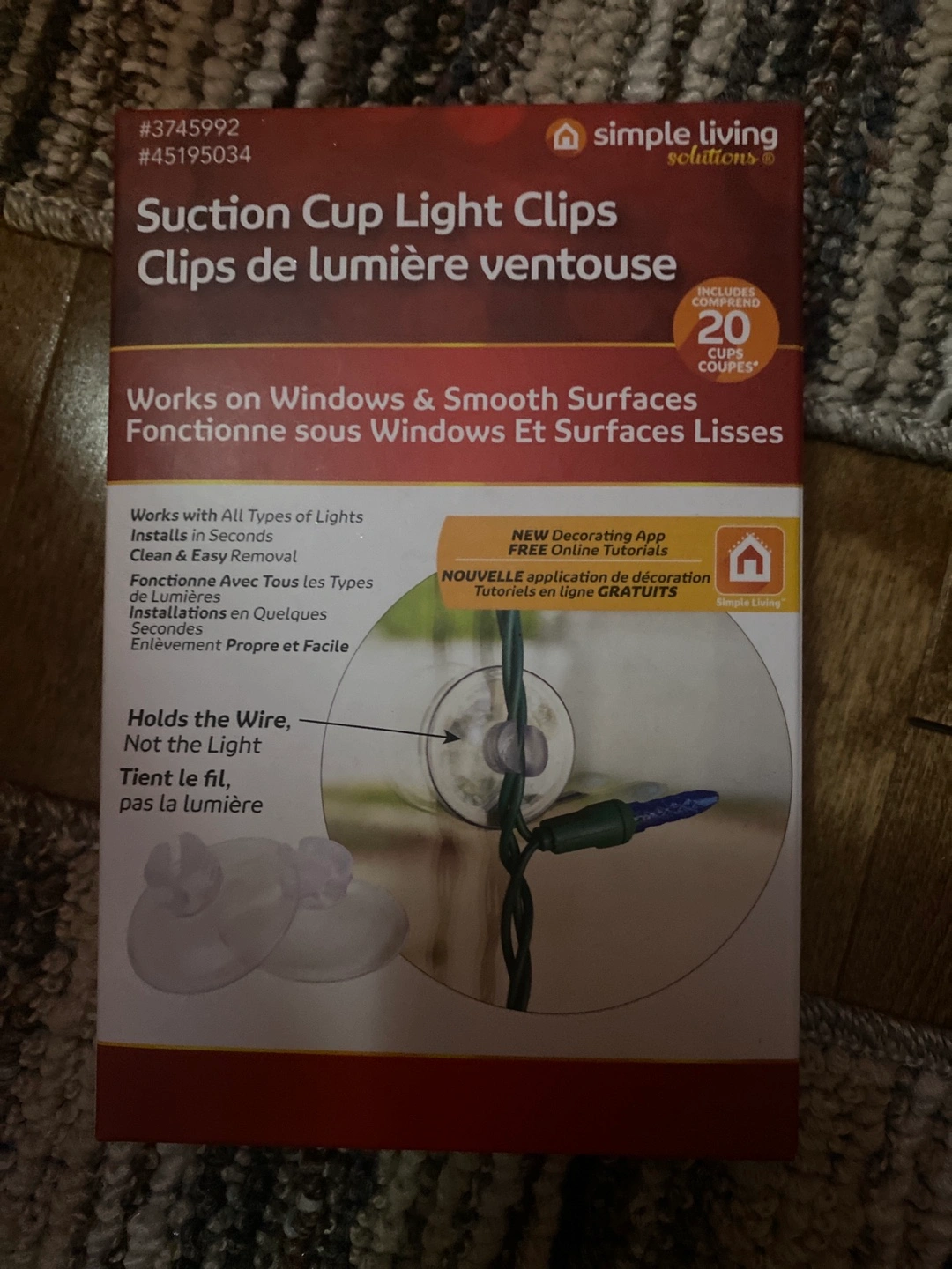 Includes 20 suction cups. Works with all types of lights. Clean and easy removal. Holds the wire, not the light. Works on windows and smooth surfaces.