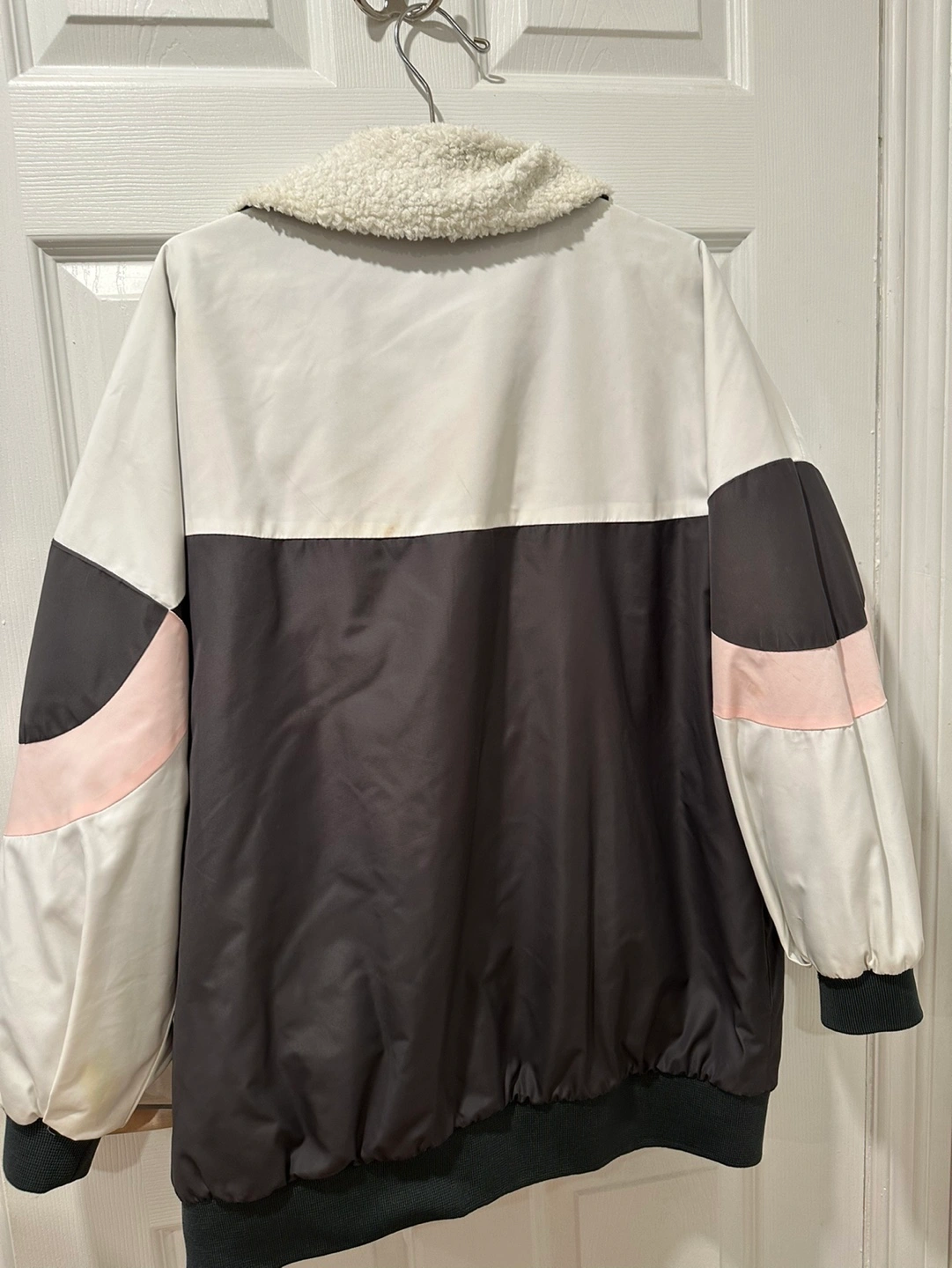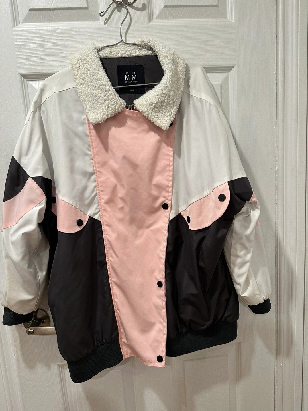 71Colour block jacket with a fuzzy white collar. Zipper closure and two front pockets. Used it couple of times. Suitable for spring.