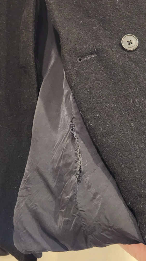 A little rip inside the lining that is already stitched other than that it is still in good condition.