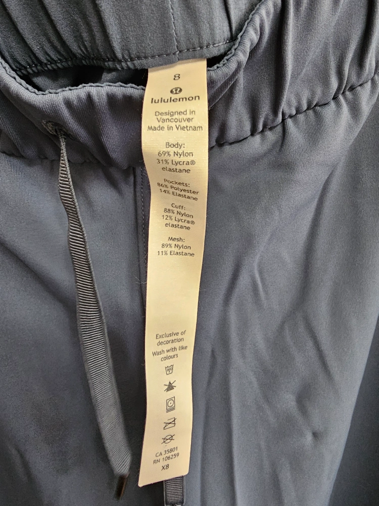 494Lululemon Jogger with a drawstring waistband and cuffed bottoms. Pockets on the sides and another pockets inside the pocket. Pls see photo. Super comfy and light. Inseam measures approximately 37 inches. *Colours may appear slightly different due to screen and light conditions.* Pickup only.