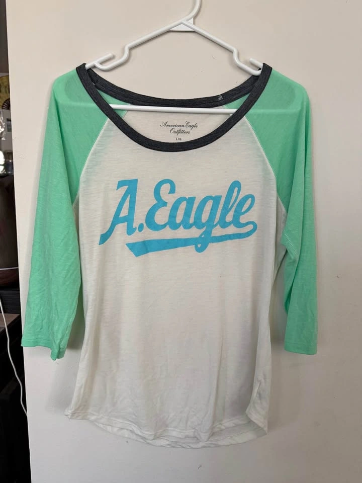 Women’s American Eagle Y2K Raglan Baseball Shirt size large. Willing to do bundle pricing/discount if multiple items are purchased. I have posted other tshirts, hoodies and pants for sale on my profile, feel free to check those out!