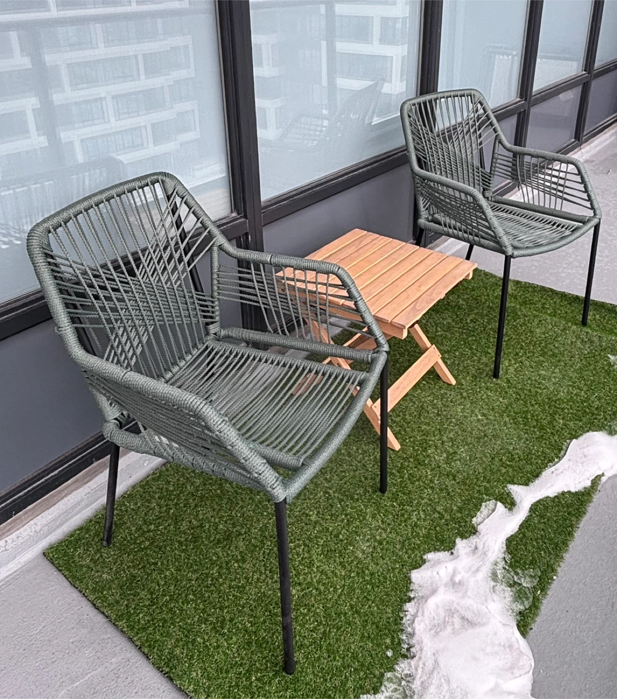 Buy & SellSet of 2 Green Outdoor Chairs with Small Wooden TableSet of 2 Green Outdoor Chairs with Small Wooden Table$100These outdoor chairs have black metal legs. A small, foldable wooden side table is also included. It's suitable for a balcony or patio setup.ConditionLike newWHERE TO MEETCheck LocationView MapSELLERverifiedVanessaUnionville650 reviews0 chats·0 favorites·10 viewsSEND CHAT TO SELLERHi Vanessa! I’m interested in your listing.Hi Vanessa! I’m interested in your listing.Get the Karrot app to chatSign In to chat
