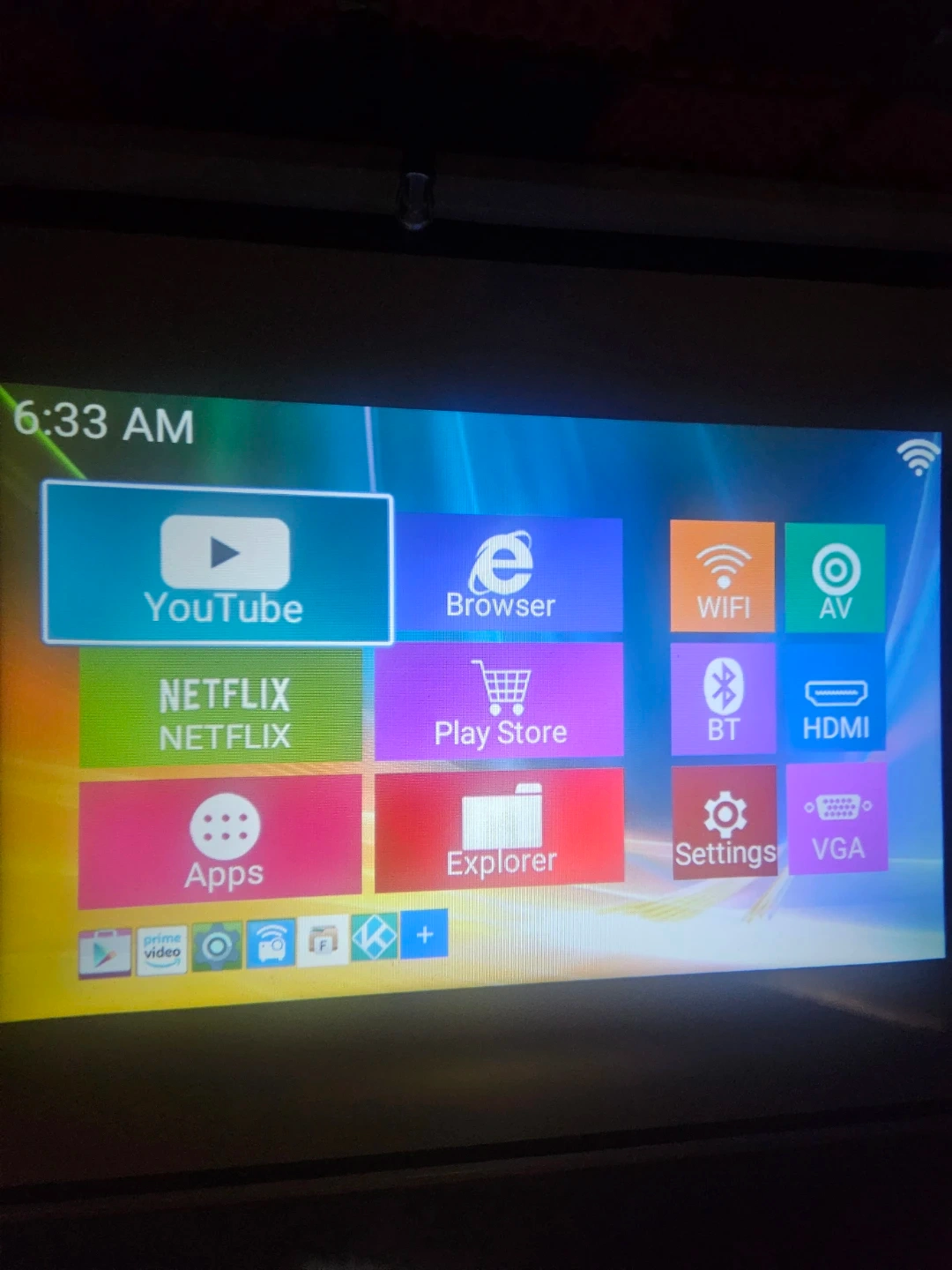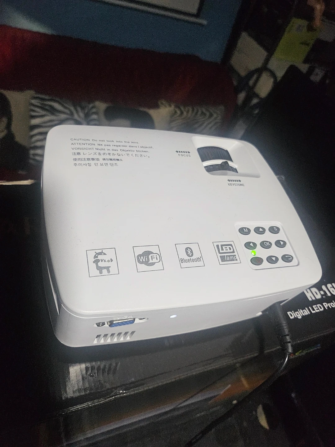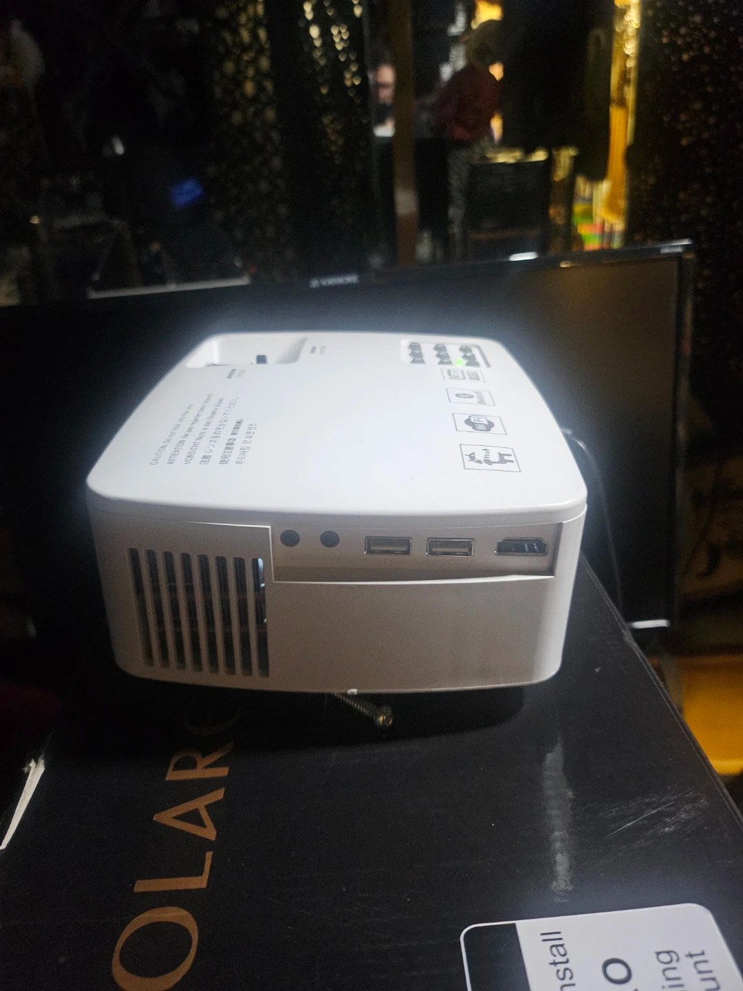 This is a white smart has Kodi loaded BeoVision digital LED projector. It supports WiFi and Bluetooth connectivity. Comes with multiple input options including HDMI and USB.