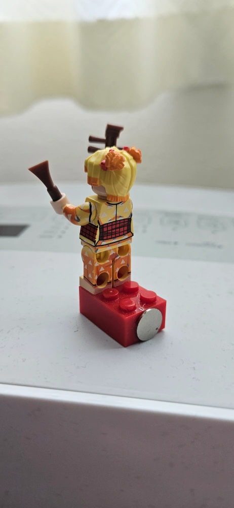 LEGO minifigure of Zenitsu Agatsuma from Demon Slayer. Features detailed printing and includes shamisen and brick with a little magnet on it.