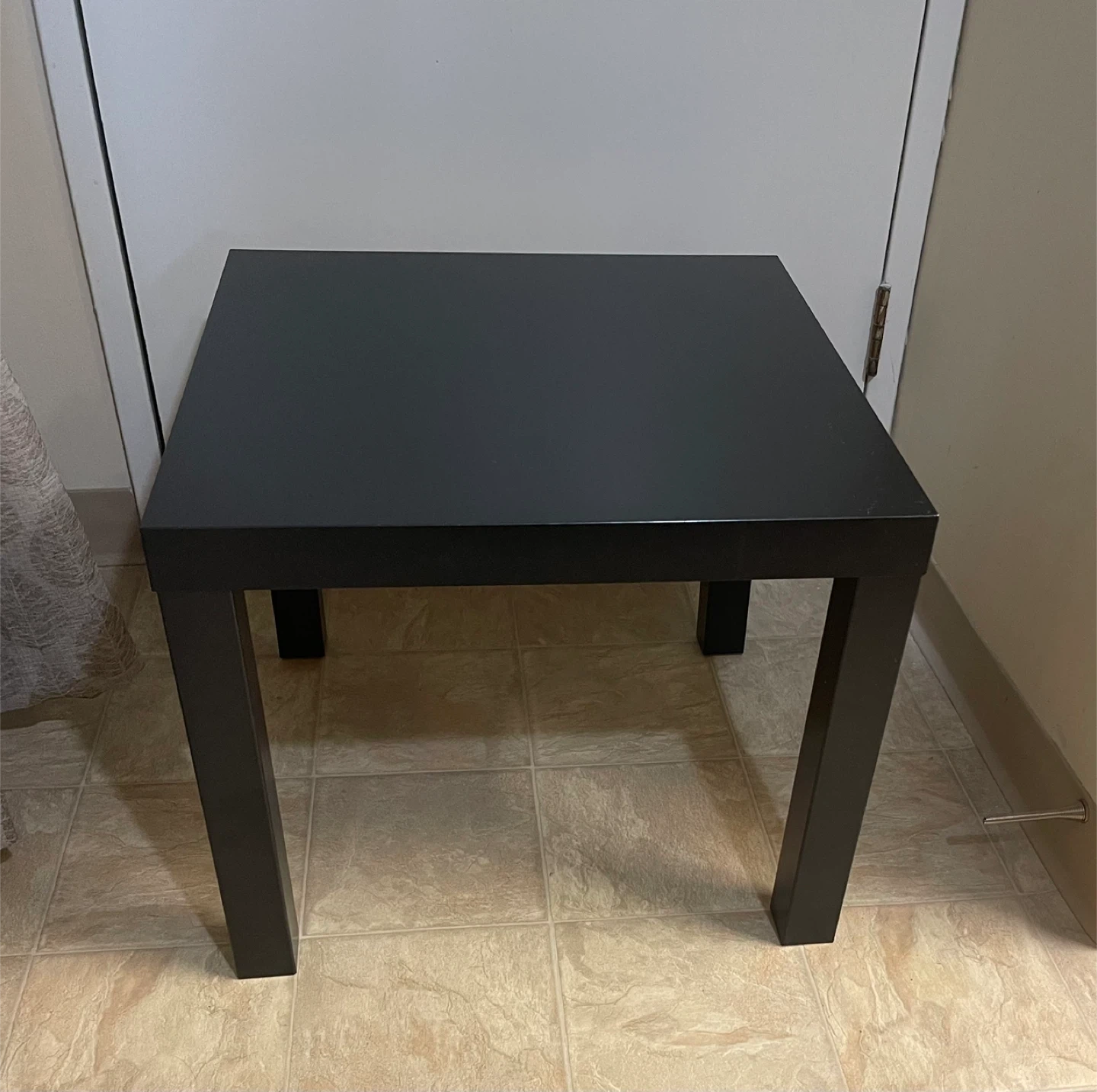 IKEA black Lack side table. It's a square wooden side table with four legs. Perfect for any living room. It can also be used as a nightstand or plant stand. Very good condition. From smoke-free, pest-free, and pet-free home.