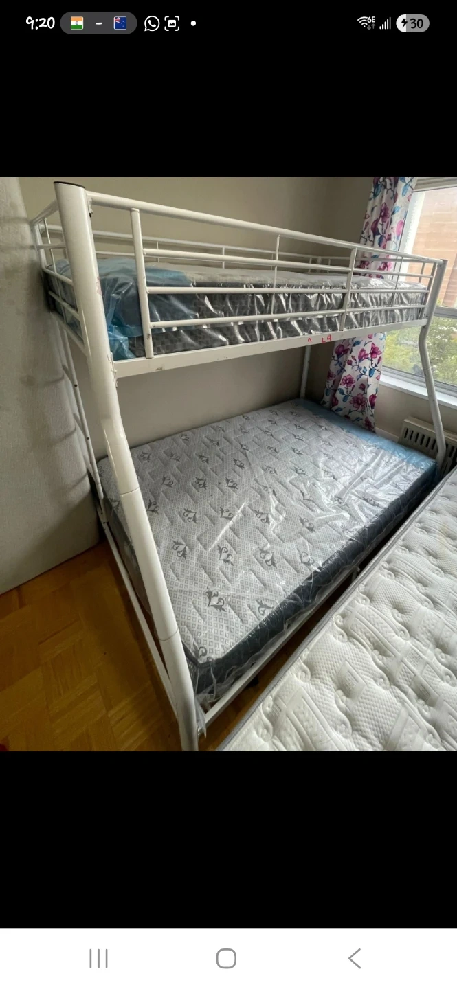 MOVE OUT SALE – Twin over Double Metal Bunk Bed + Ladder + Mattresses (FREE)