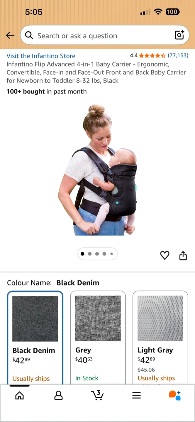 Infantino Flip Advanced 4-in-1 baby carrier. It's a convertible, face-in and face-out carrier for newborns to toddlers. Ergonomic design. Suitable for babies 8-32 lbs.