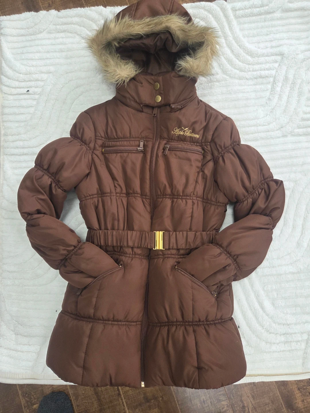 Apple Bottoms Brown Puffer Jacket with Fur Hood
