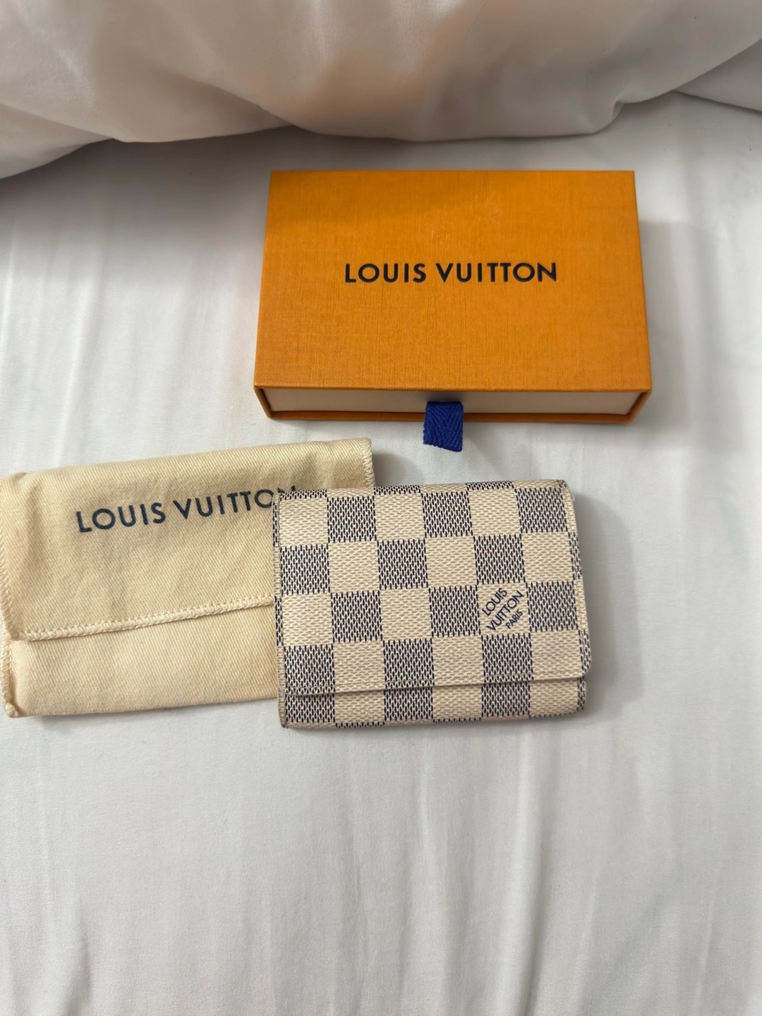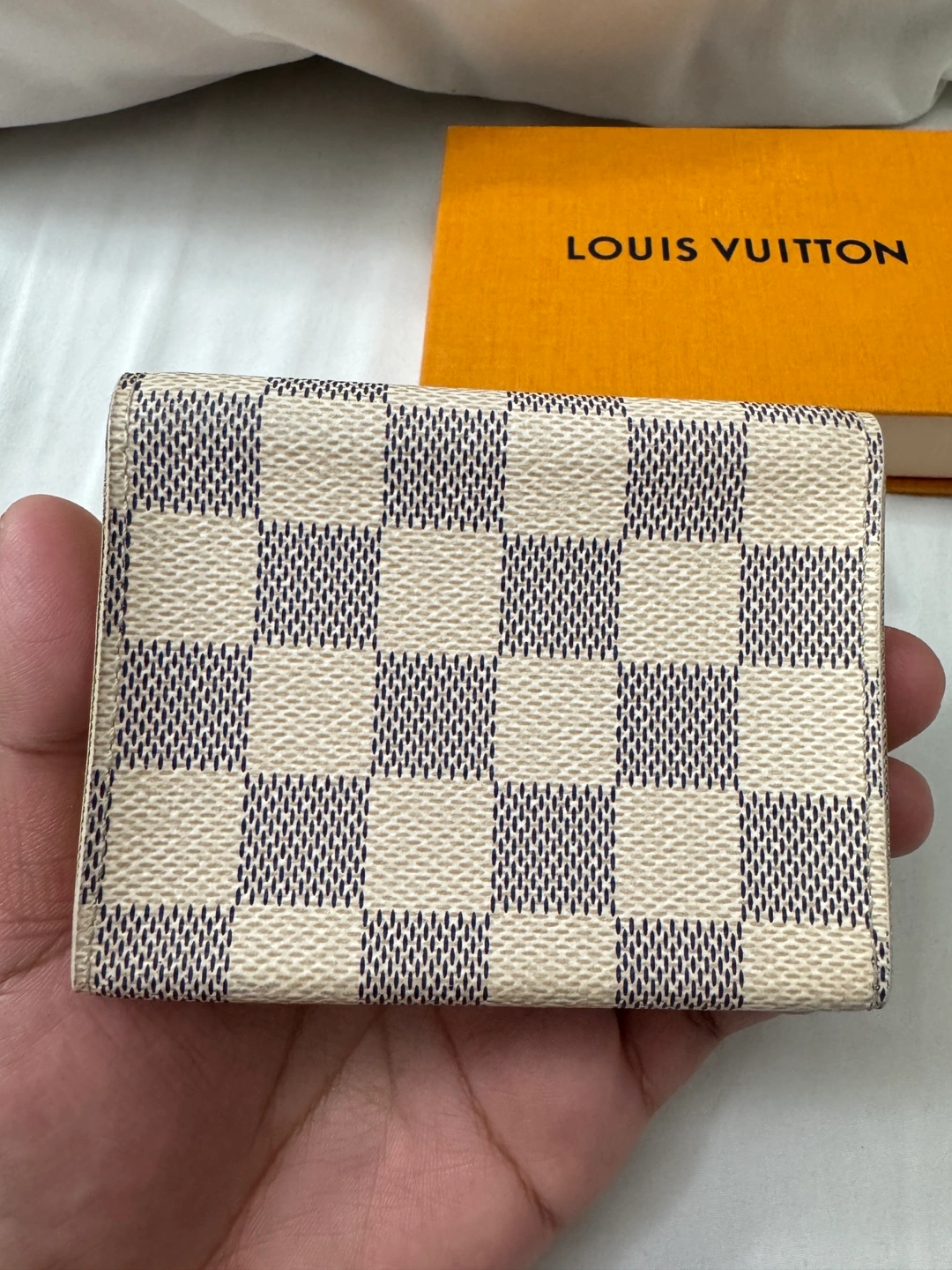 Louis Vuitton card holder in Damier Azur canvas. Includes original box and dust bag. Canvas material with leather lining.
