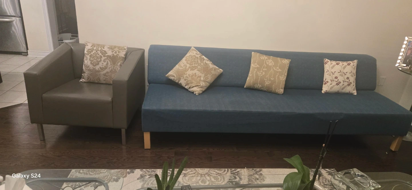 Blue Futon Sofa with Accent Pillows