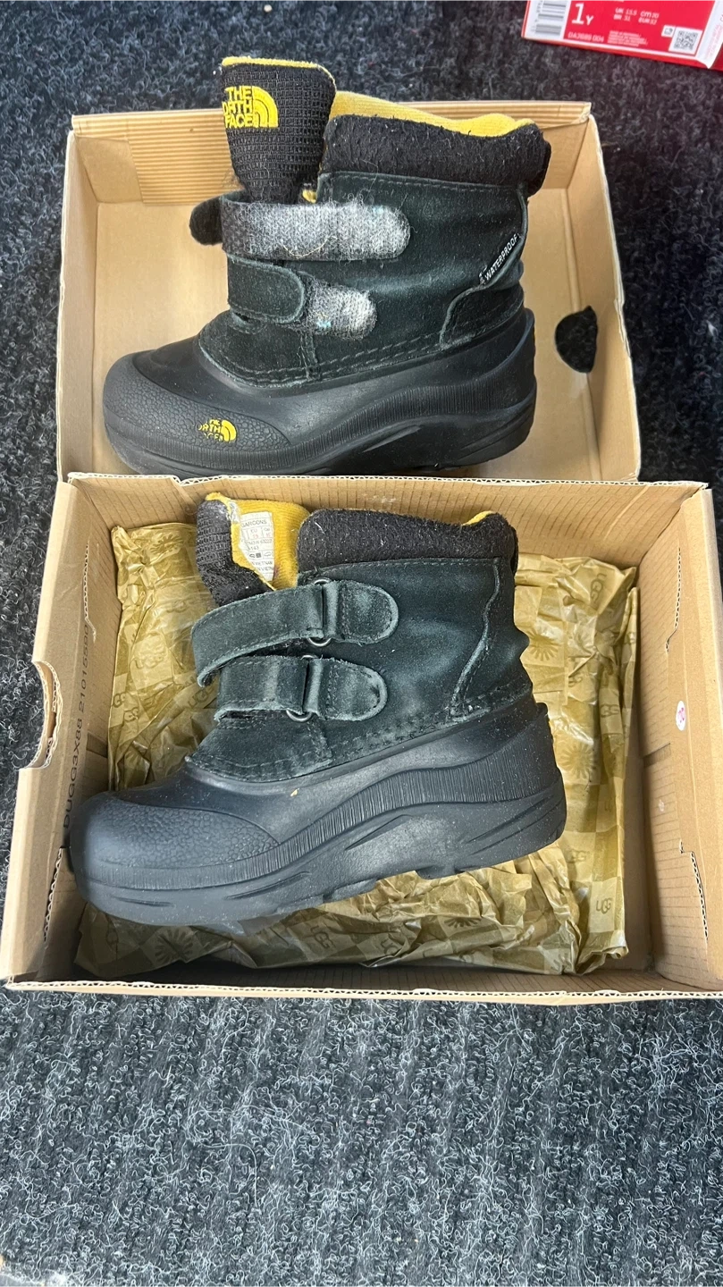 Selling a pair of The North Face toddler snow boots. They are black and in good condition. They come in a UGG box and are a size 7.5 in US sizing.