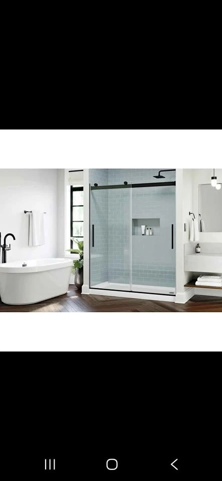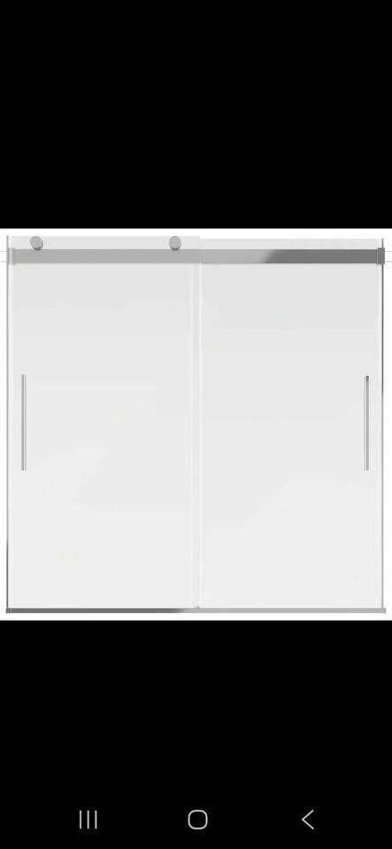 Fits openings from 55-3/8 in. to 59-3/8 in. wide and is 71-1/8 in. high. Offers a walk-in width of 25-1/2 to 29-1/2 in. and a walk-through height of 66 in. Accommodates up to 3/8 in. out-of-plumb.