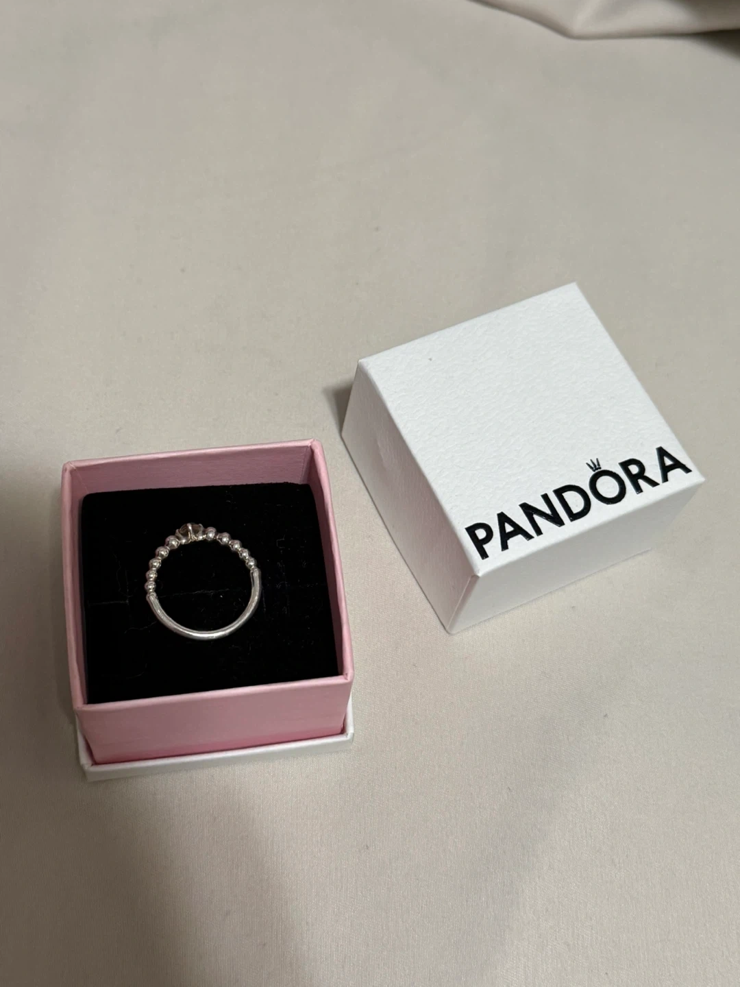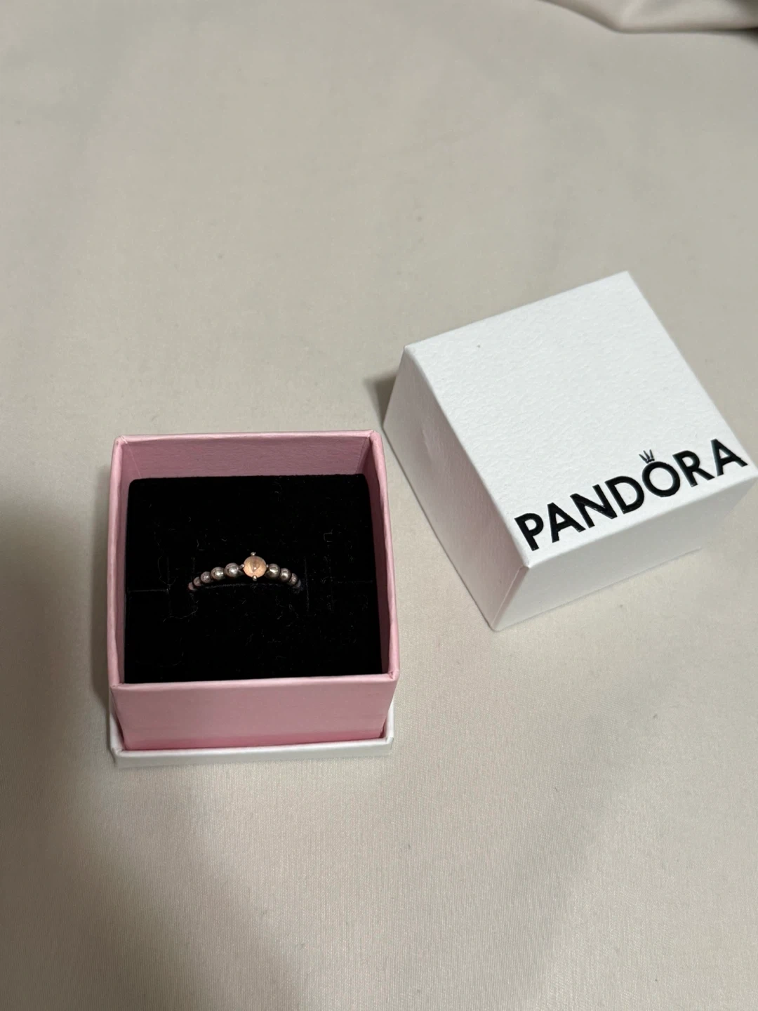 Selling a lovely Pandora ring! It's the Pink Solitaire Ring and comes with its original box. It's in great condition and ready to wear