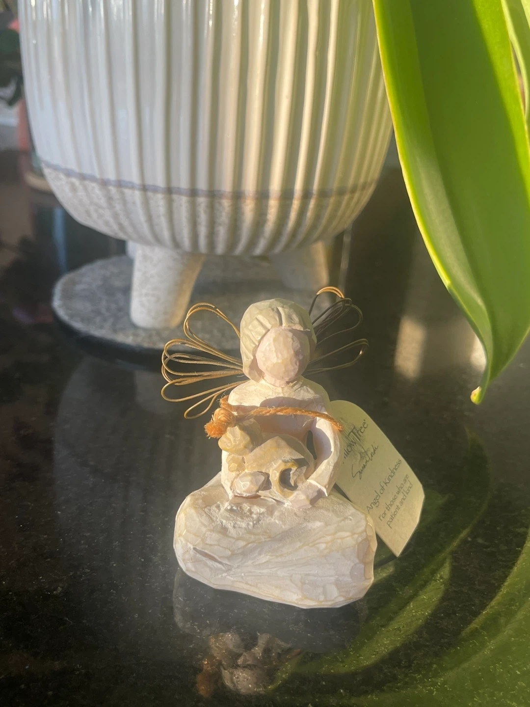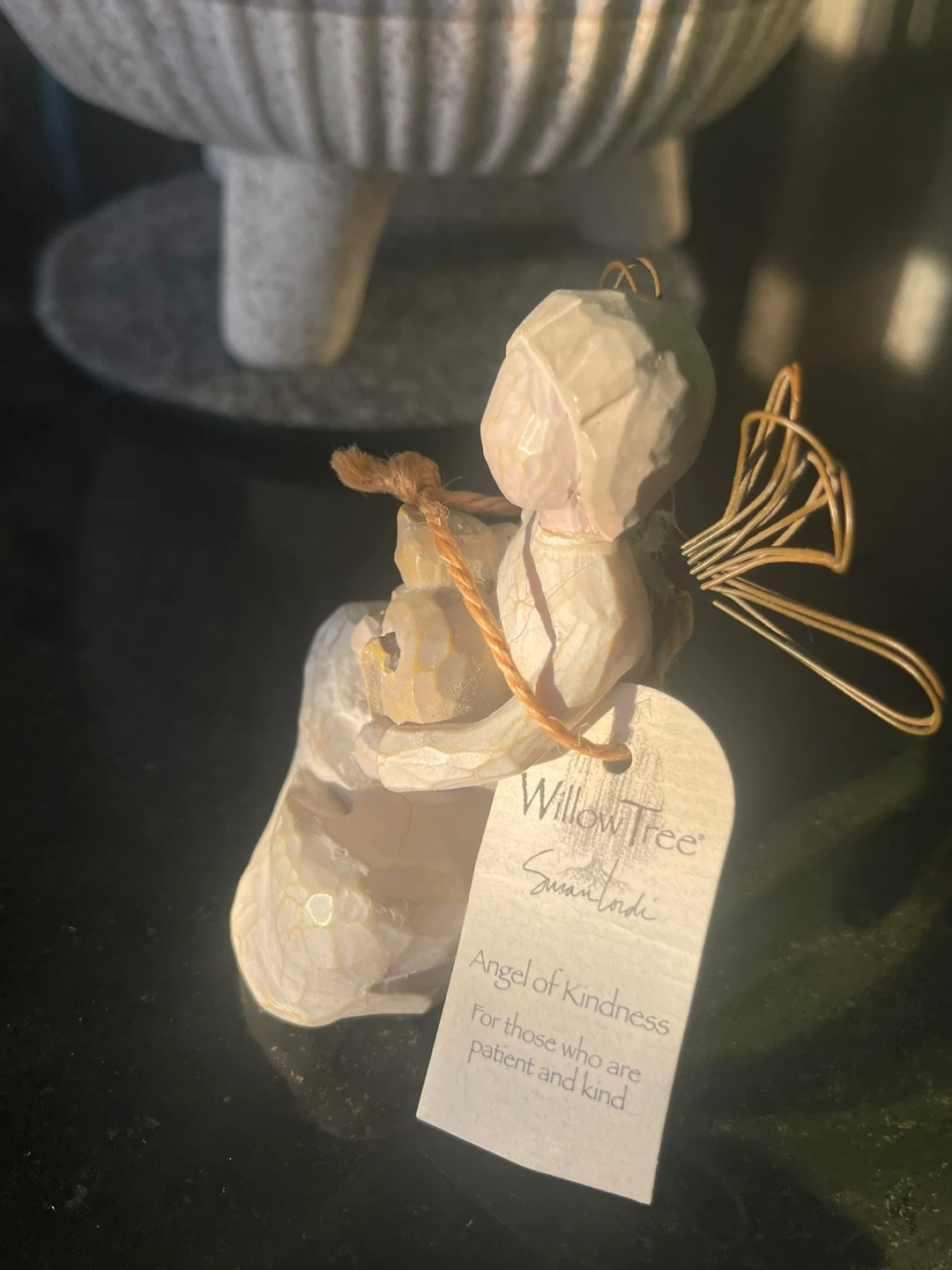 This Willow Tree Angel of Kindness figurine is carved from resin.