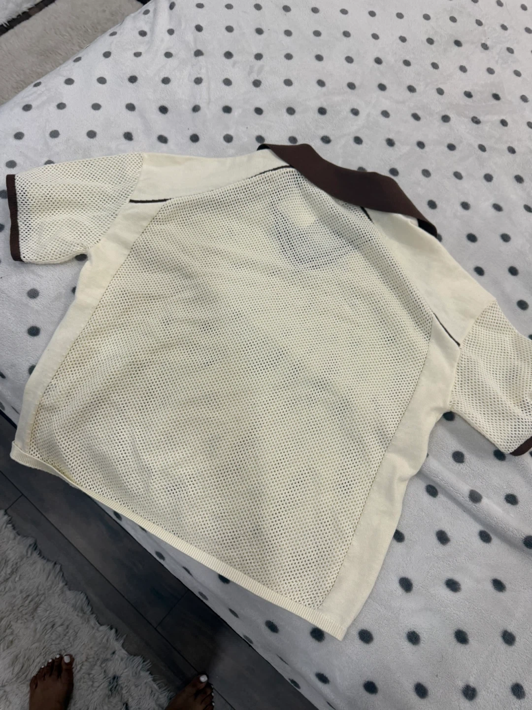 Buy & SellCream Mesh Polo ShirtCream Mesh Polo Shirt$27A cream collared polo shirt with a mesh overlay. It features brown trim on the collar and sleeves. This top is made from a lightweight knit material.ConditionNewWHERE TO MEETHeartland Town CentreView MapSELLERverifiedTrishSweetgrass Gate732 reviews0 chats·0 favorites·2 viewsSEND CHAT TO SELLERHi Trish! I’m interested in your listing.Hi Trish! I’m interested in your listing.Get the Karrot app to chatSign In to chat
