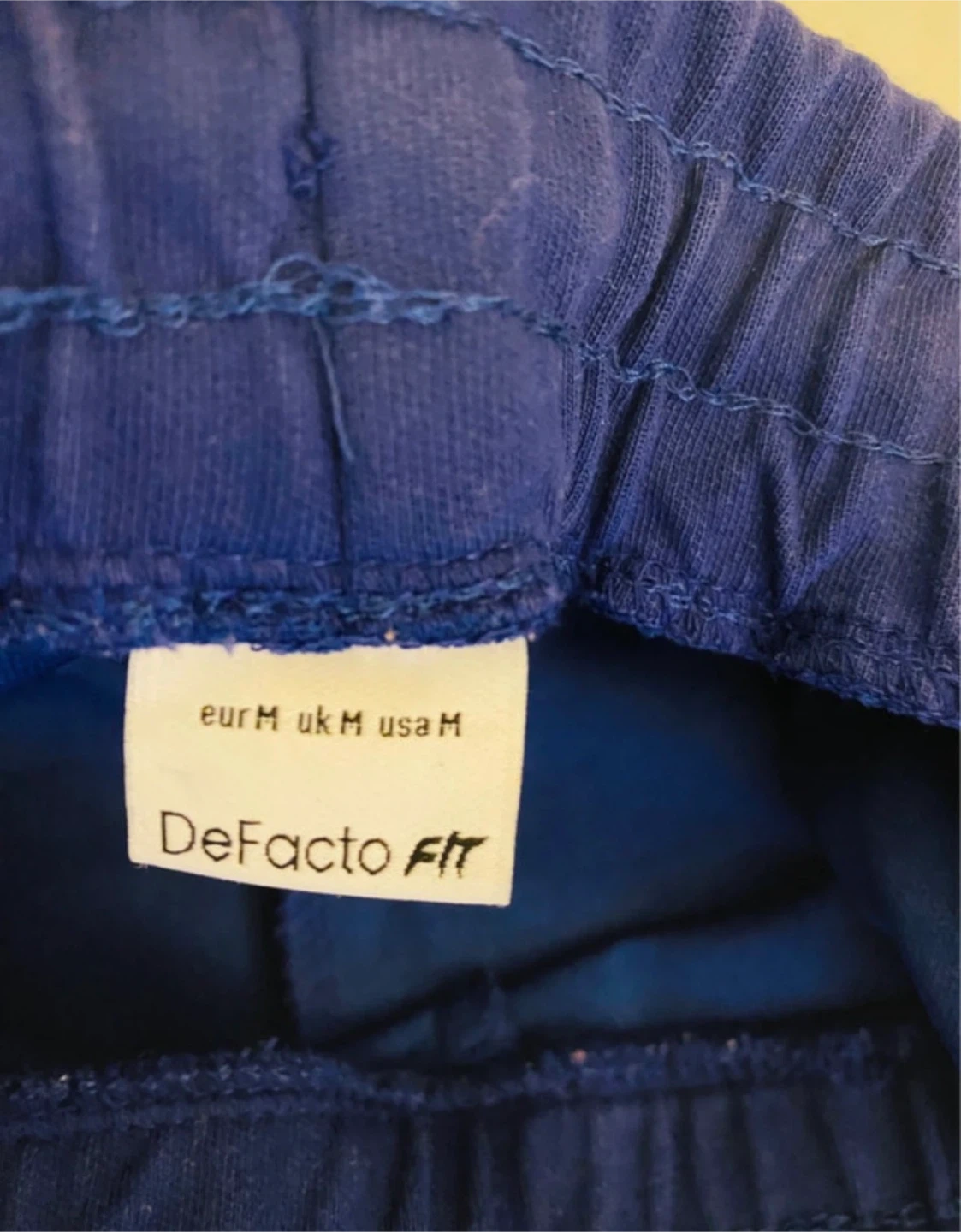 Blue athletic shorts from DeFacto Fit. Features an elastic waistband with a drawstring and side pockets. Size medium. 100% cotton fabric.
