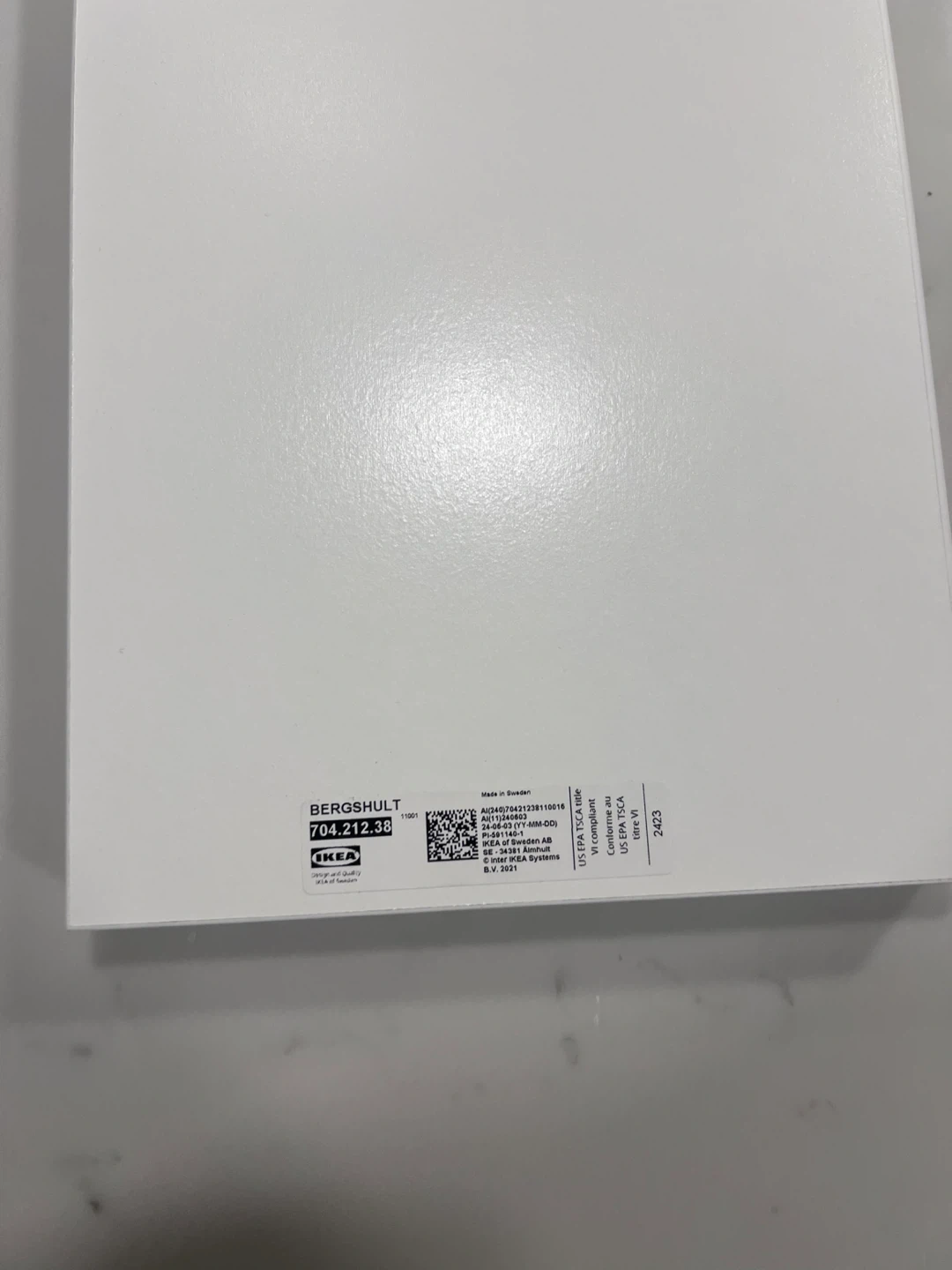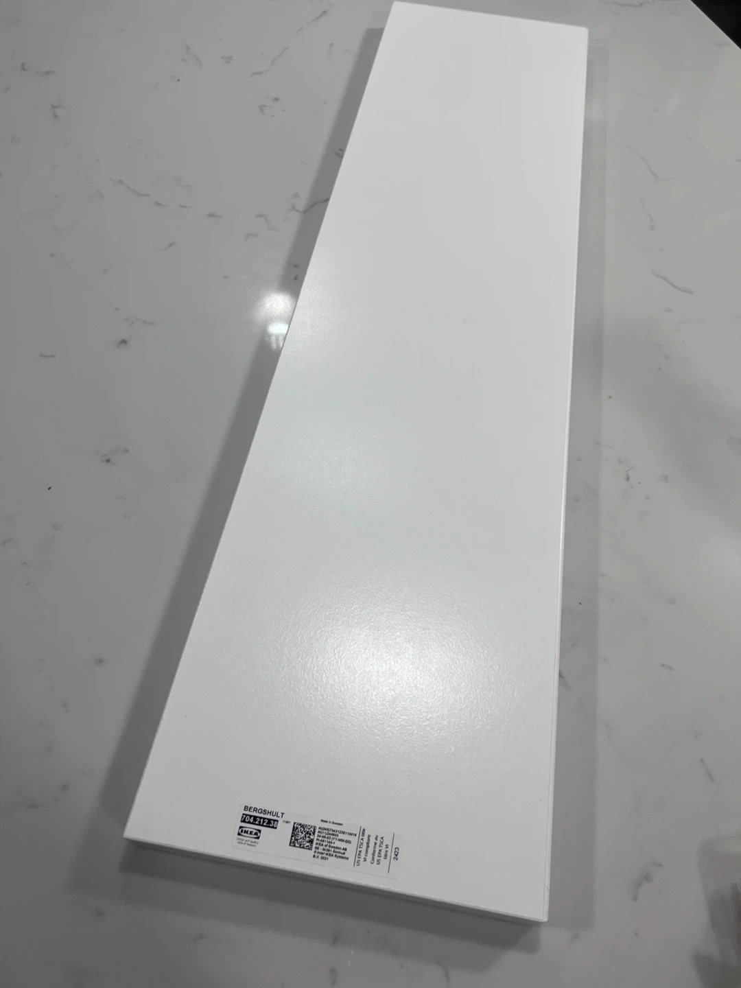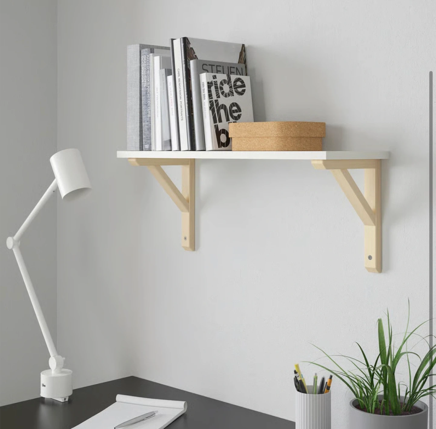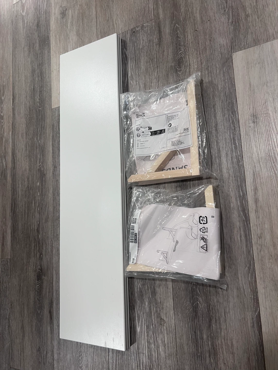 *NEVER USED***This is a white IKEA BERGSHULT wall shelf. It comes with the shelf board and two wooden brackets. It's a simple and functional piece for displaying items.