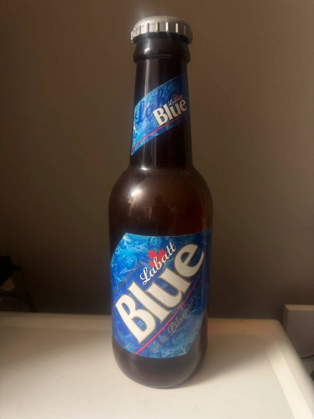 Labatt Blue beer bottle. It's a 14” oversized novelty bottle. Bottle cap is removable! Sticker on the back is from “The Dard” in Wasaga Beach. Great for any beer collector!