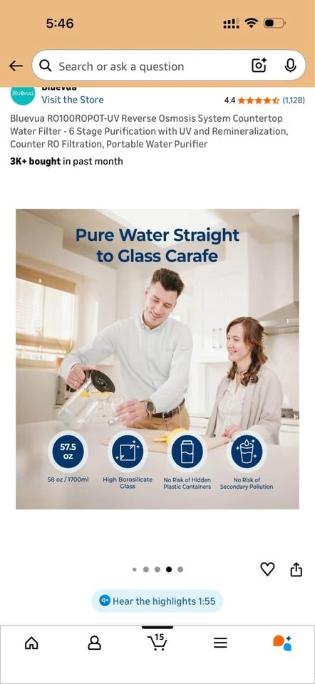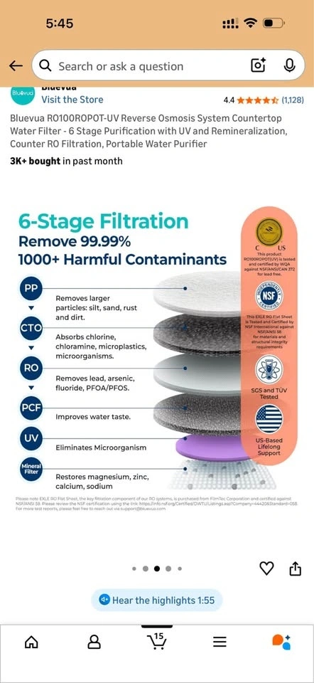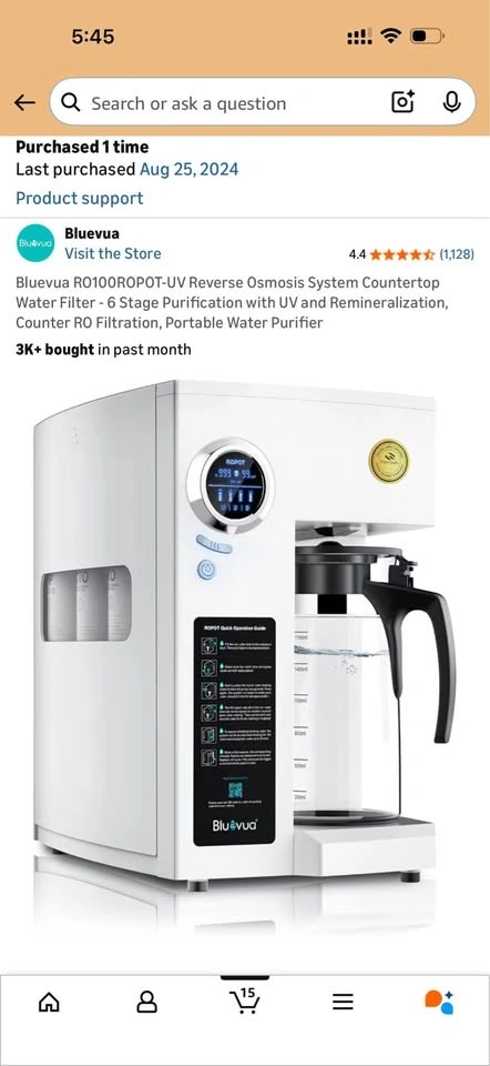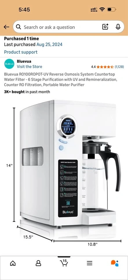 Bluevua RO100ROPOT-UV Reverse Osmosis System Countertop Water Filter - 6 Stage Purification with UV and Remineralization. 1.5 years old. Pickup near diner bar in Rego Park.