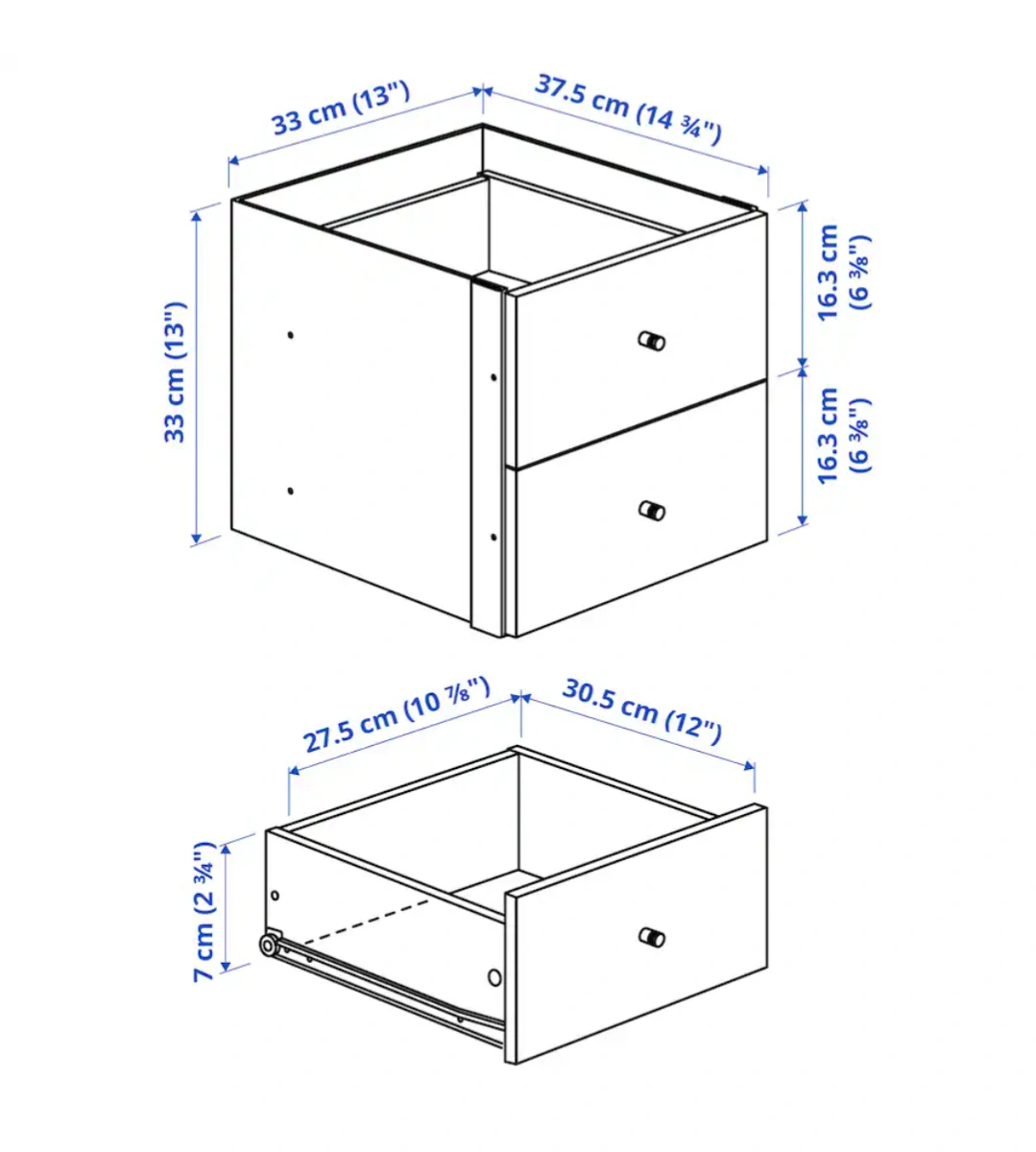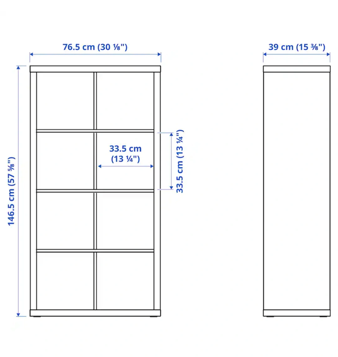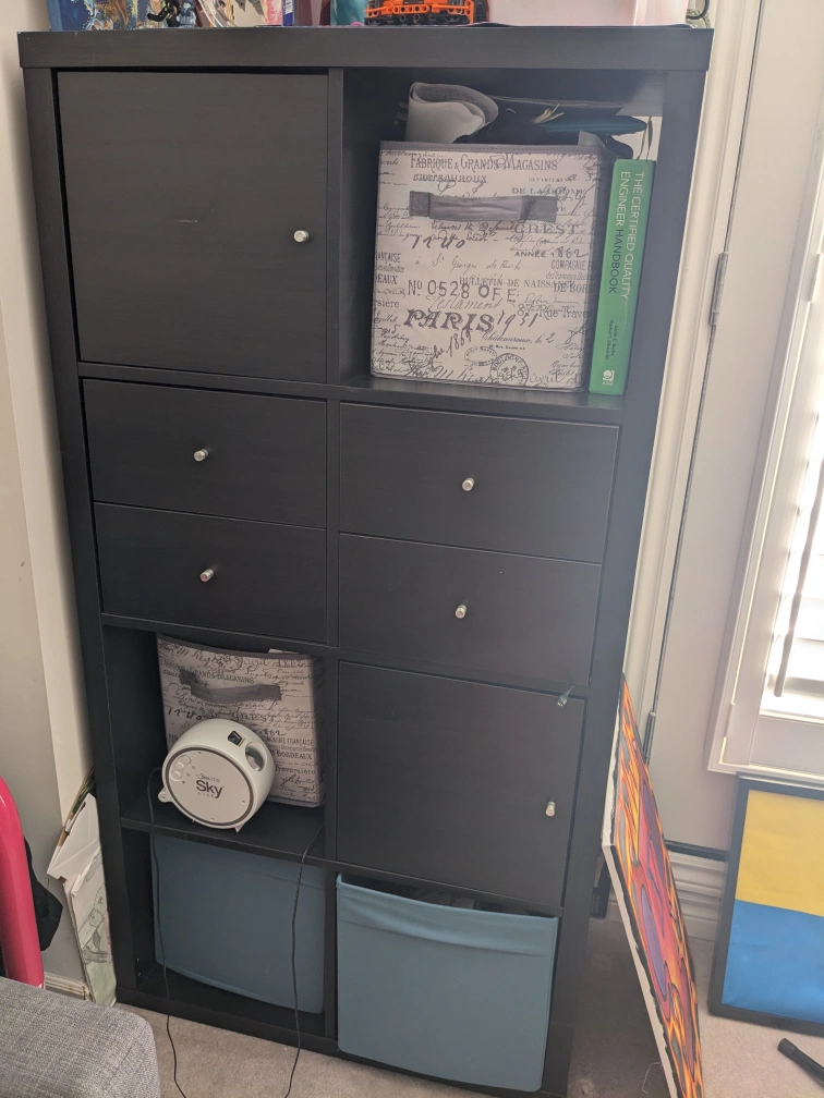 Like new shelf, assembled, drawers and doors set a bit different on my shelf. I used it vertically