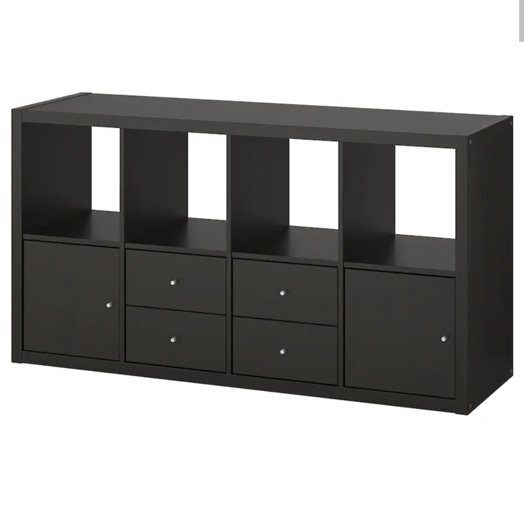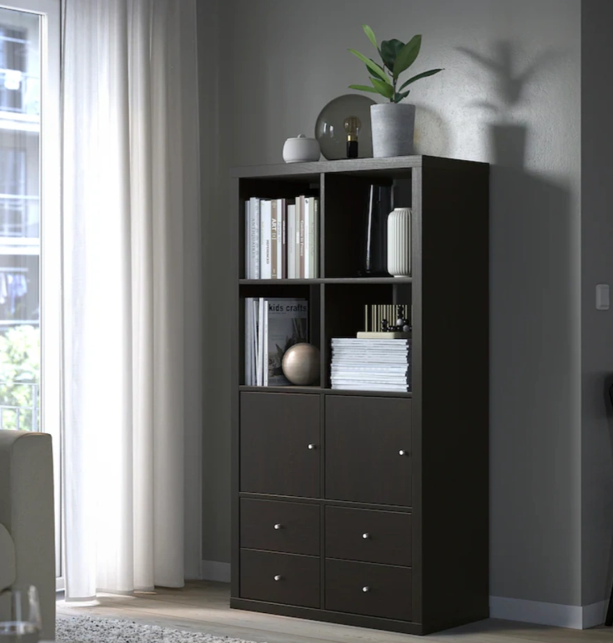 IKEA KALLAX- Shelf unit with 4 inserts, black-brown.