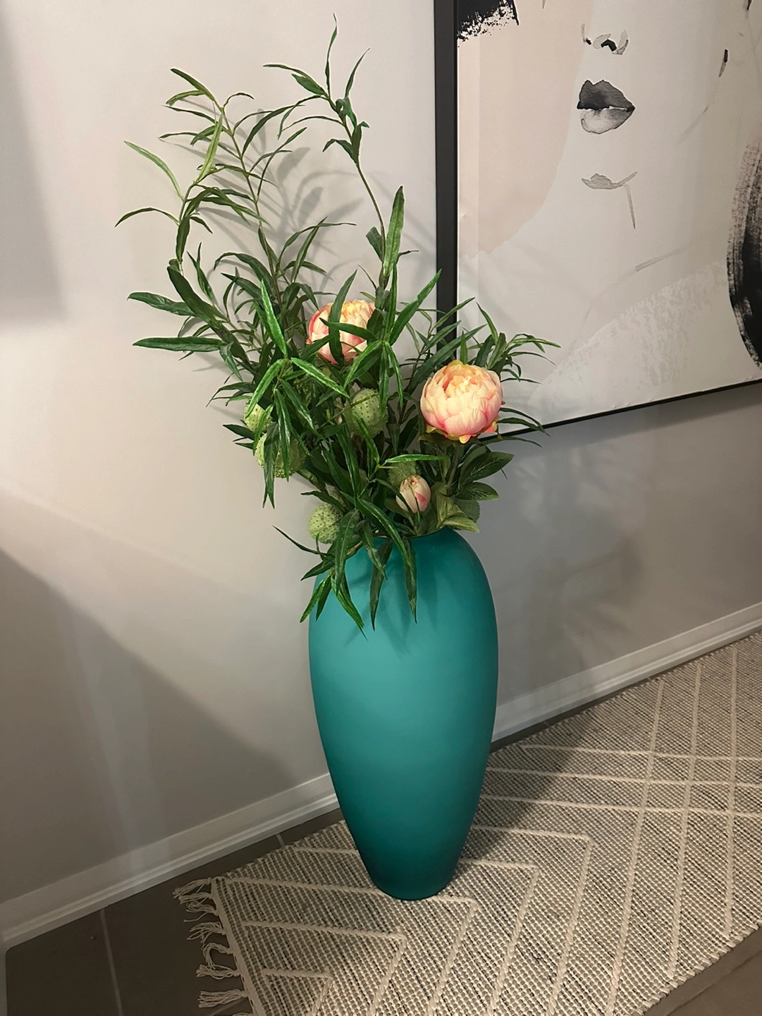 75Tall, teal vase. Great for adding a pop of colour to any room. Like new.