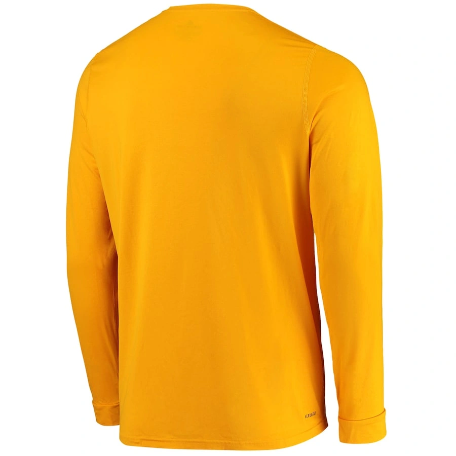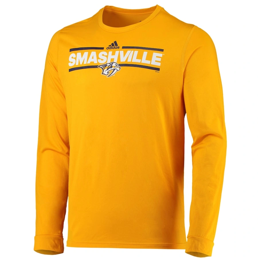 22Long sleeve T-shirt. Yellow. Adidas logo on the front. Nashville Predators logo and text on the front.