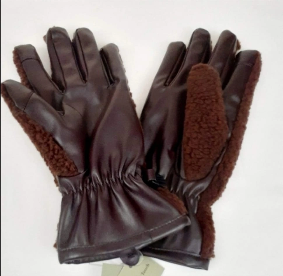 22Brown faux leather gloves with fleece lining. Gloves have an elastic cuff. warm for winter