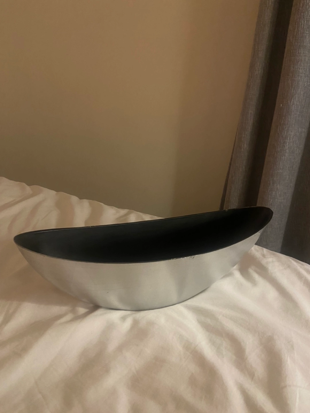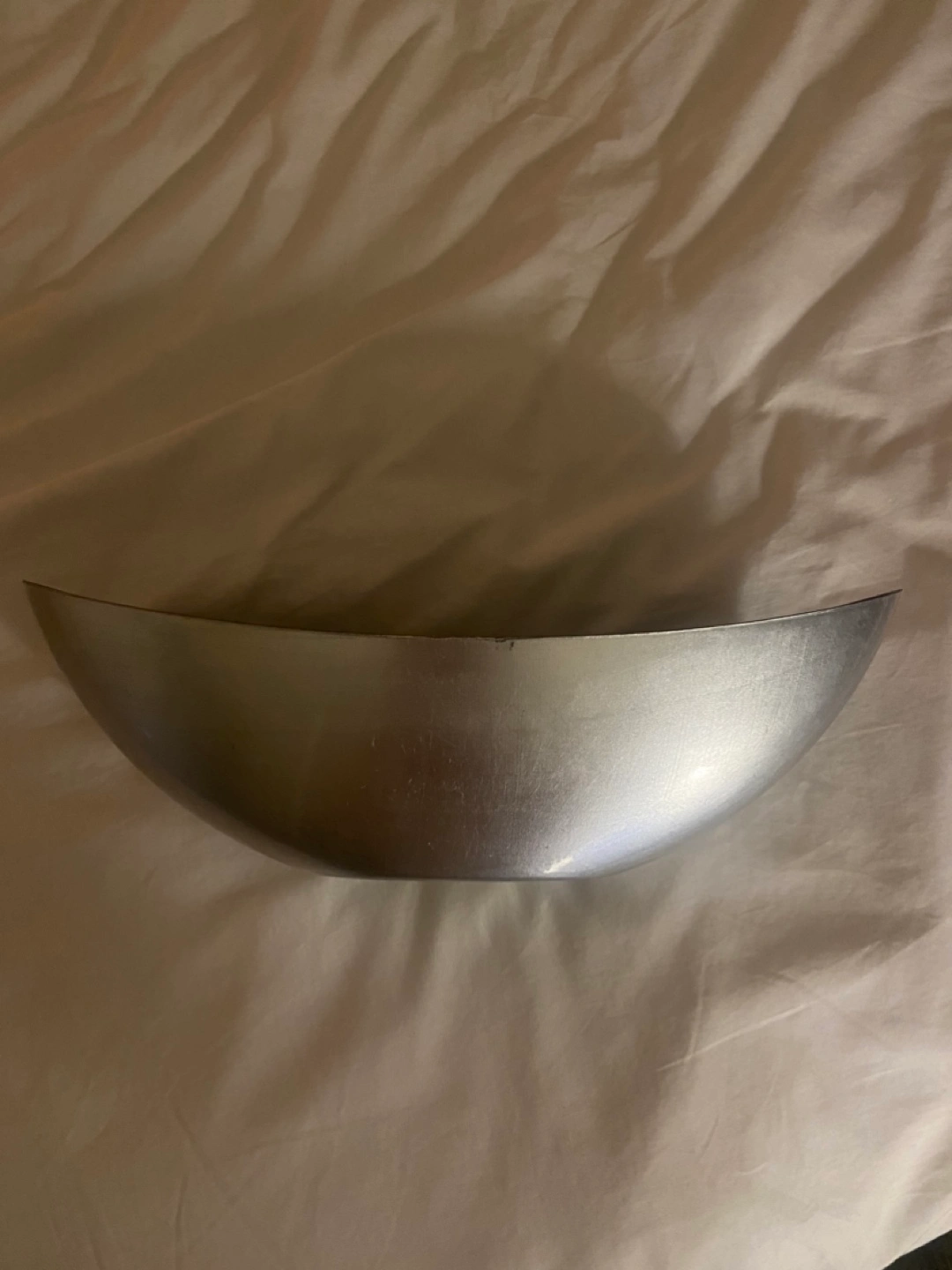 225Silver metal planter. Has black plastic lining on the inside. 5 x 16 inches.