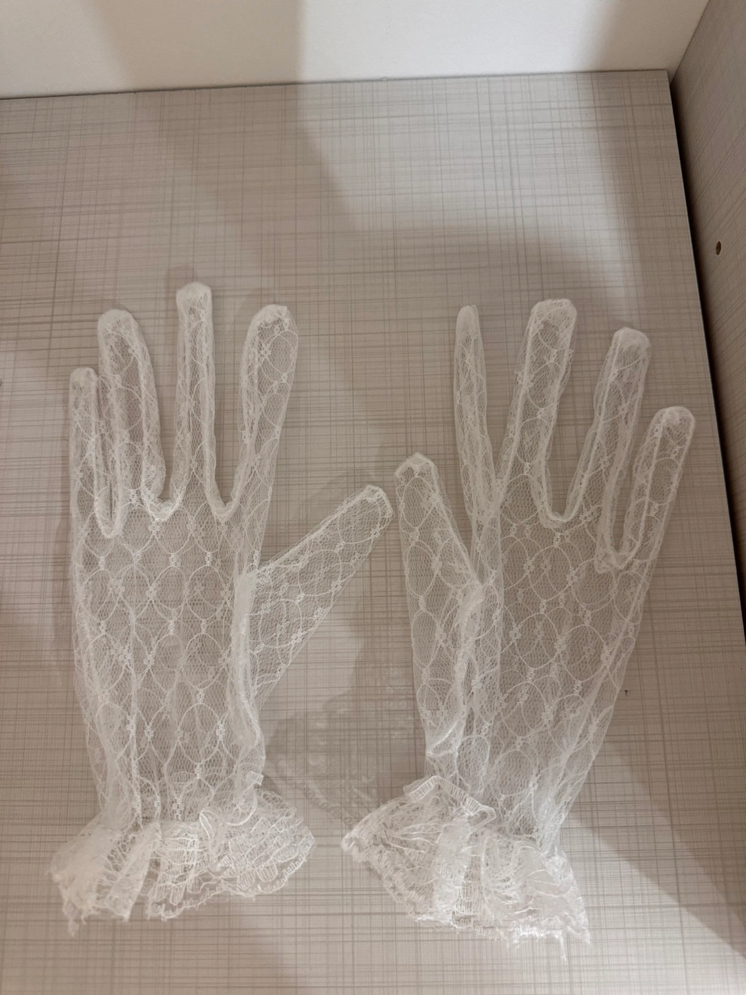 White lace gloves with a ruffled cuff. New, never worn. Elegant Wedding Gloves - Perfect for Your Special Day! new