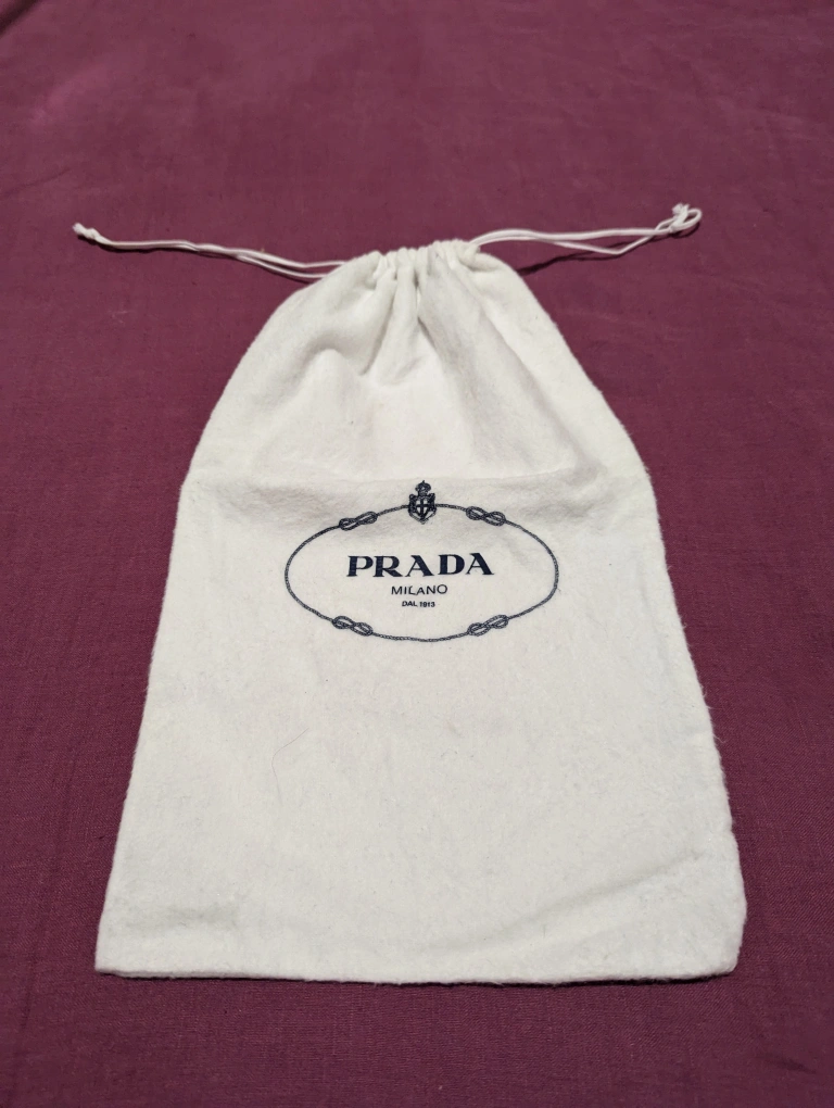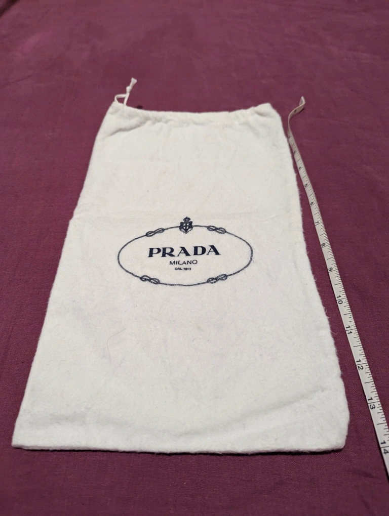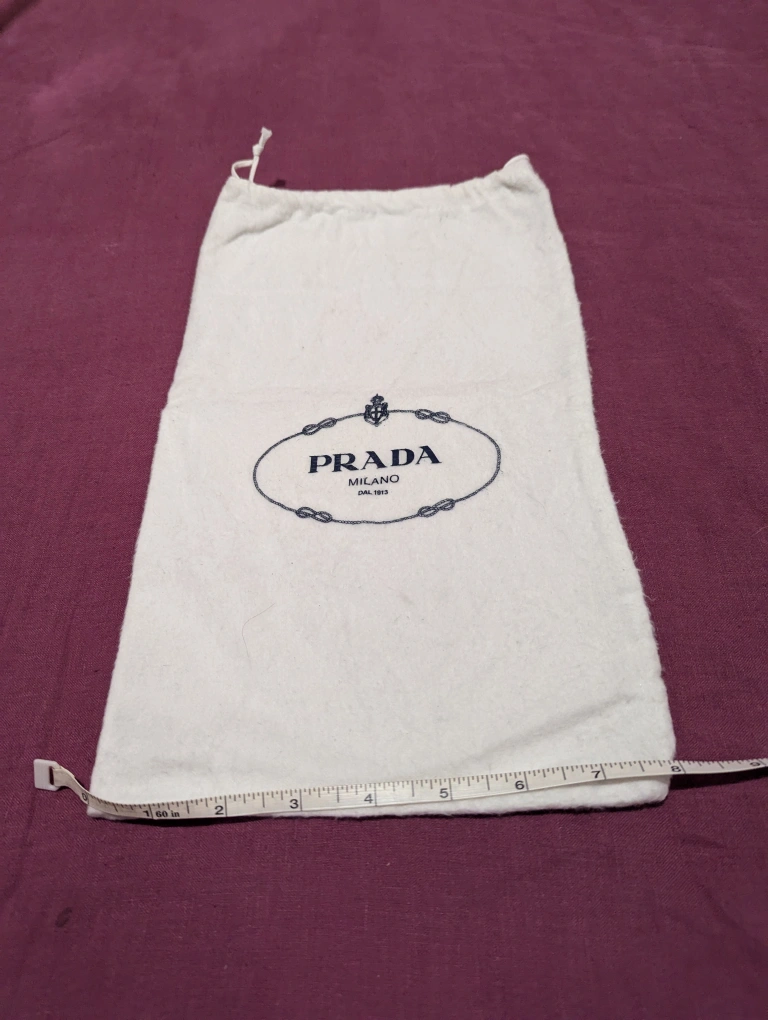 Authentic Prada dust bag with black Prada logo. Measurements shown in pics. Wallet or small purse sized.