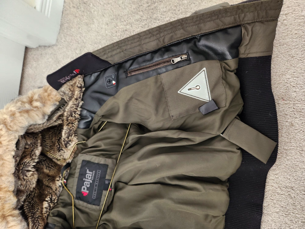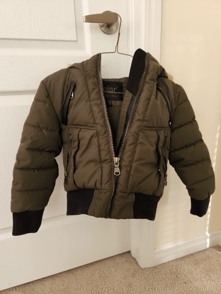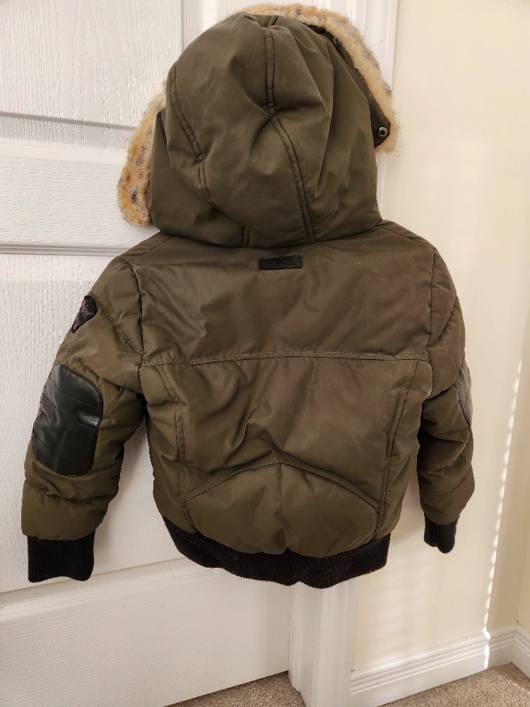 Green winter jacket with faux fur hood. Has two pockets and a zipper closure. can take off fur. No stains, ripped, or holes. worn only a few times.