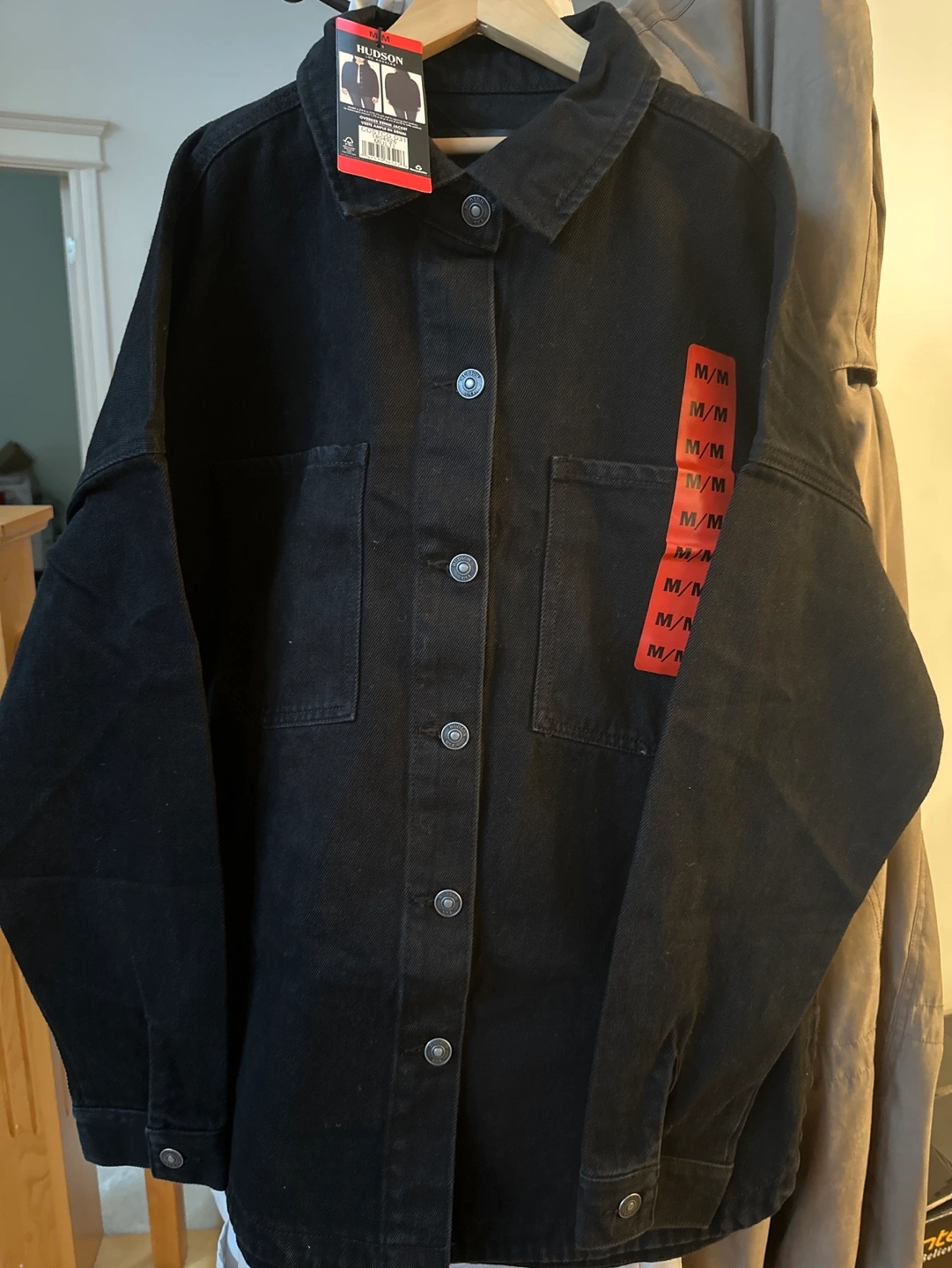 Black denim jacket with button closure and multiple pockets. Long sleeves. 2 pcs available $20 each.