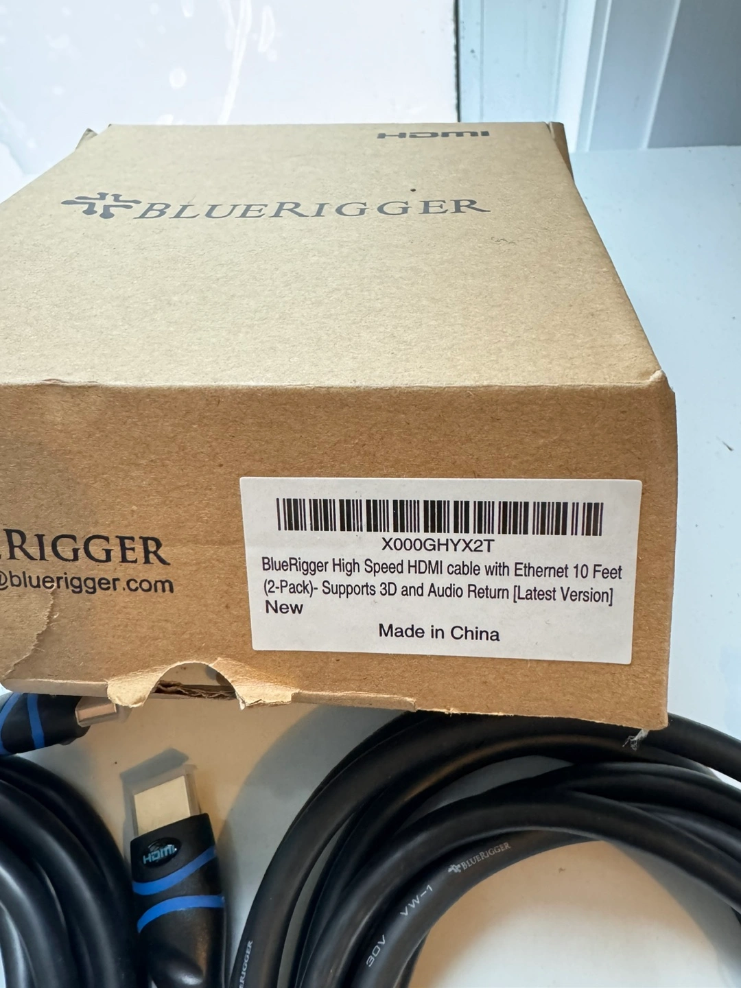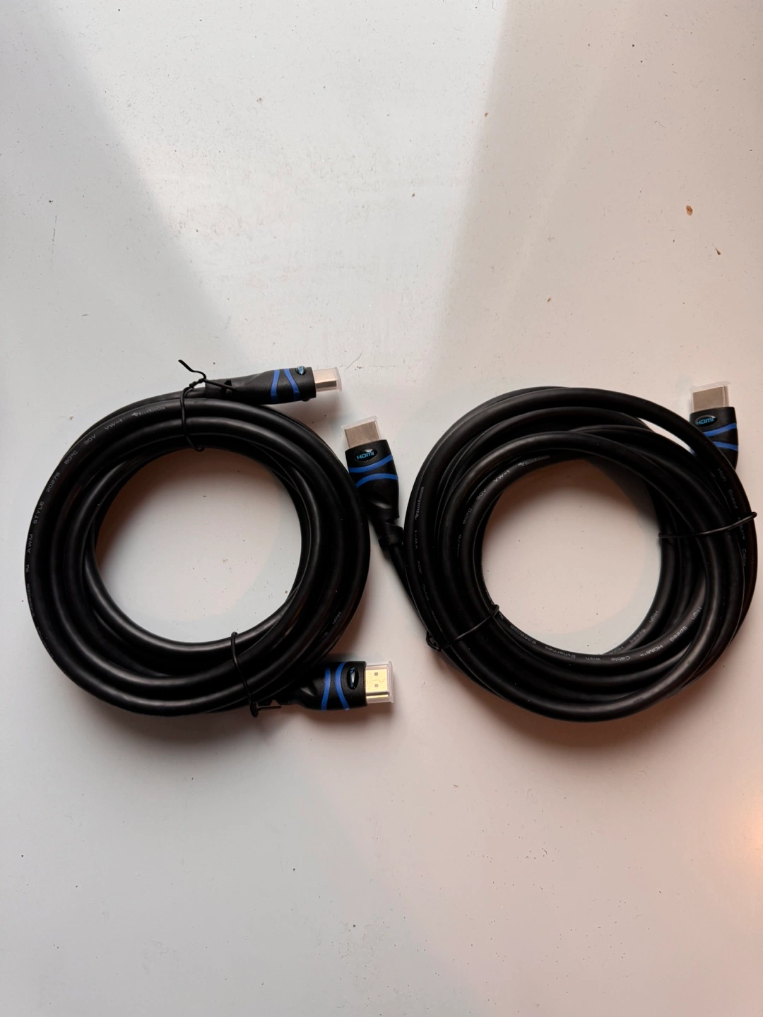Two Bluerigger High Speed HDMI cables with Ethernet, 10 feet long. Supports 3D and audio return.