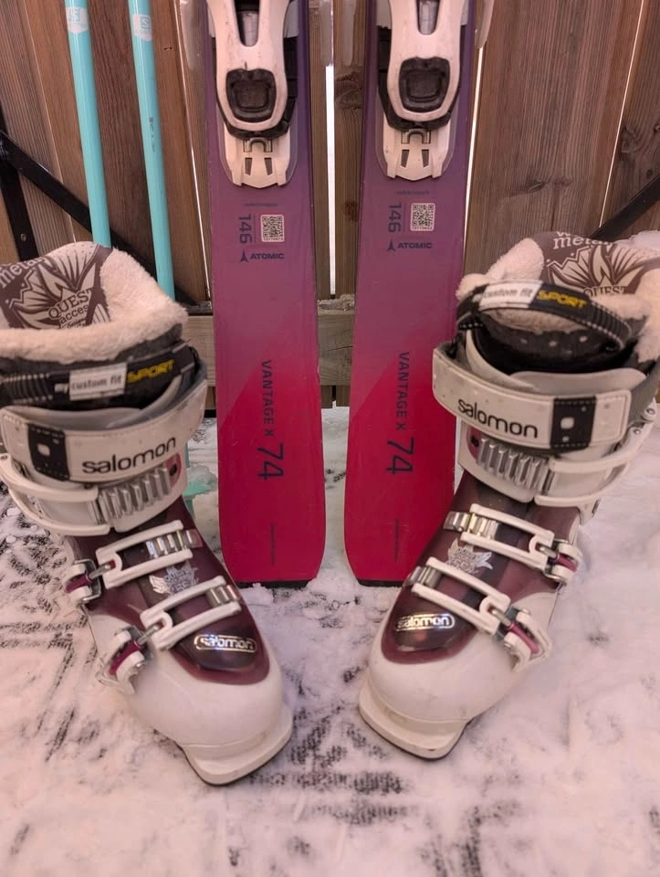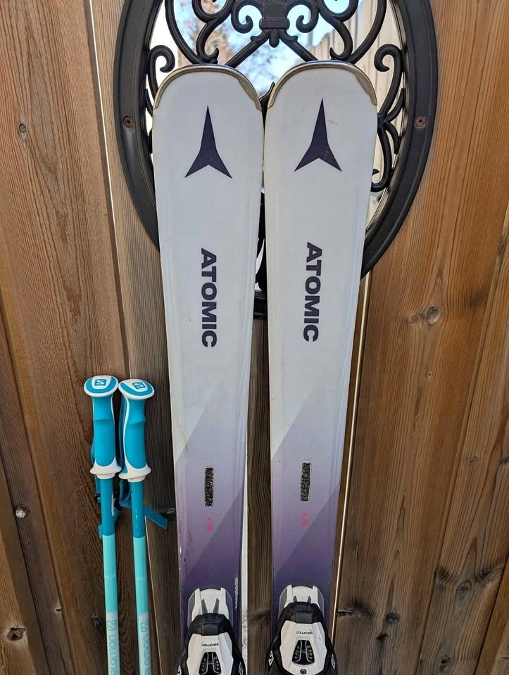 Adult or youth ski package for sale. The 146cm skis are great for learning. Includes Atomic Vantage 146cm skis with Salomon lithium bindings, Salomon ski boots (size 22.5, fits approx. size 4-5 US youth/women's), and 110cm ski poles. Other ski boot sizes (approx. 4-7 US youth/women's) may be available. Pick up in Bowness NW.