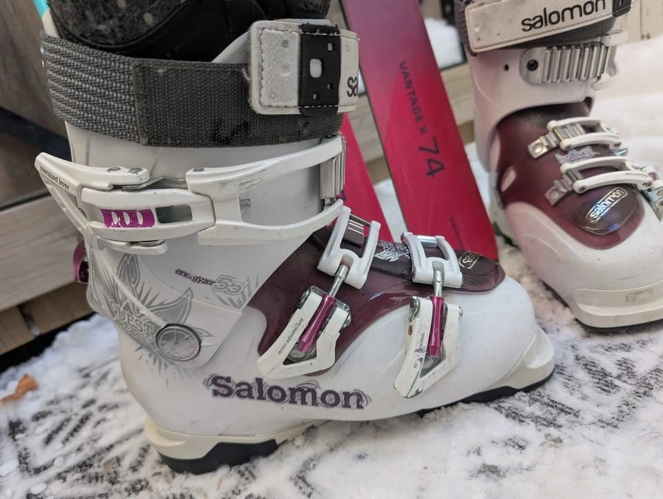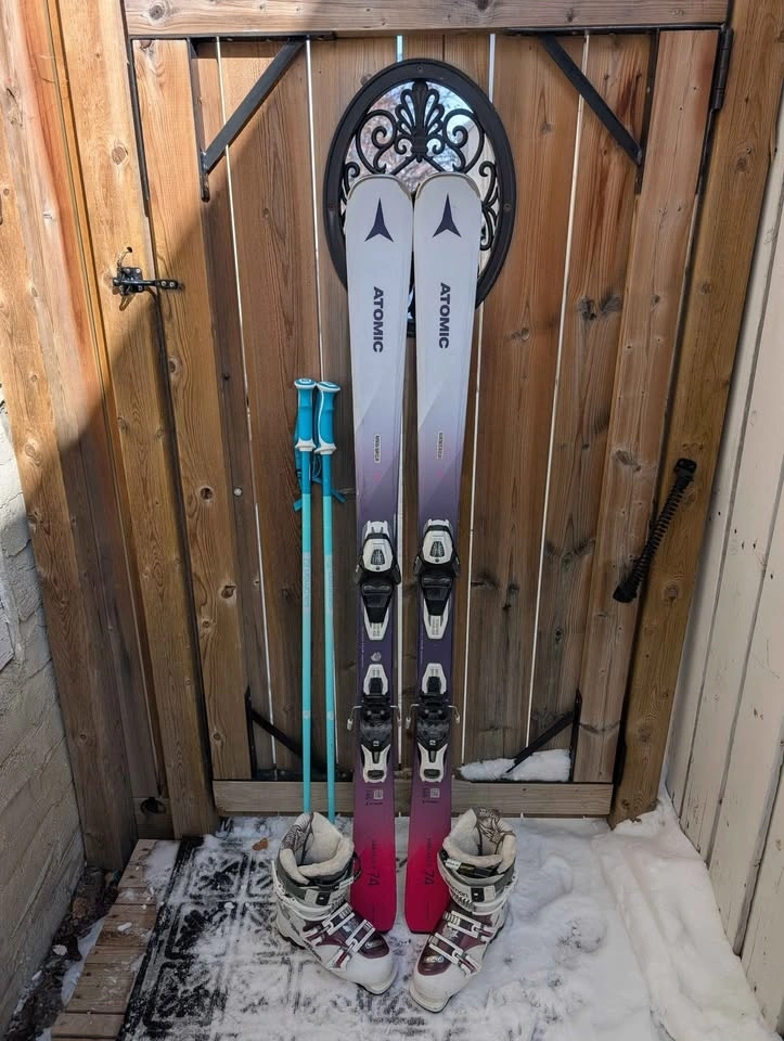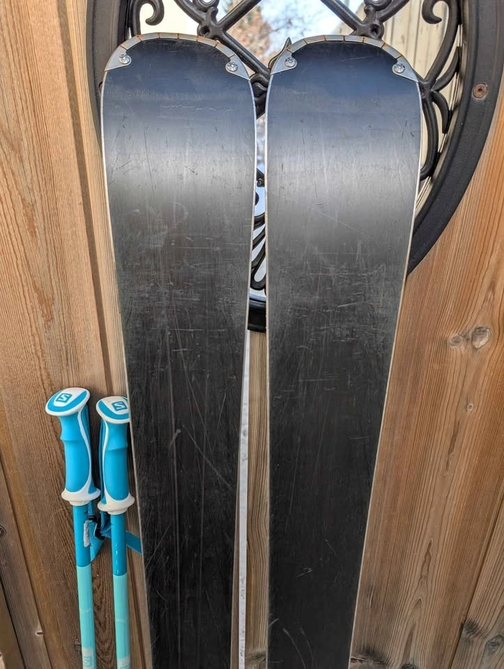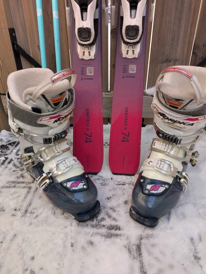 Adult or youth ski package for sale. The 146cm skis are great for learning. Includes Atomic Vantage 146cm skis with Salomon lithium bindings, Salomon ski boots (size 22.5, fits approx. size 4-5 US youth/women's), and 110cm ski poles. Other ski boot sizes (approx. 4-7 US youth/women's) may be available. Pick up in Bowness NW.
