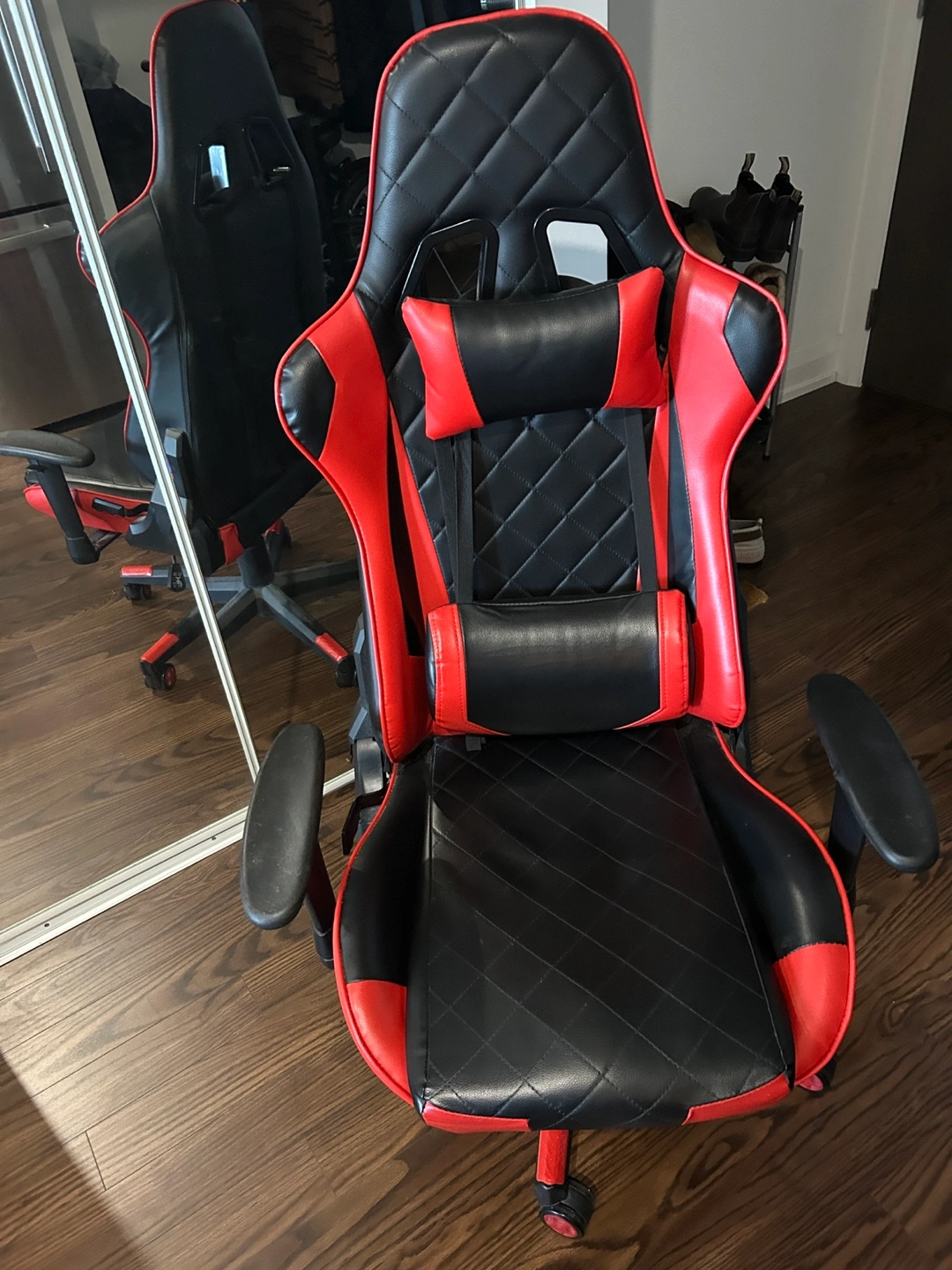 Buy & SellGaming Chair - Red and BlackGaming Chair - Red and BlackFreeGaming chair with red and black accents. Includes headrest and lumbar support pillows. Has small tear on one armrest.ConditionOkayWHERE TO MEETWorld on YongeView MapSELLERYYThornhill S867 reviews0 chats·2 favorites·76 views