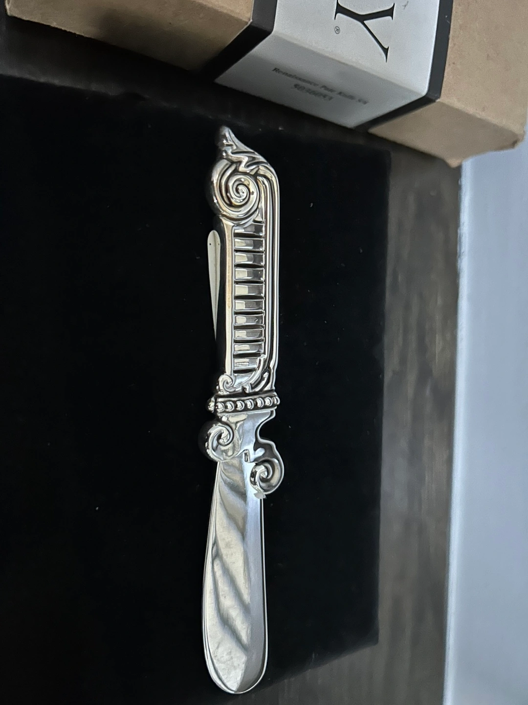 Set of 4 silver pate knives in original box.