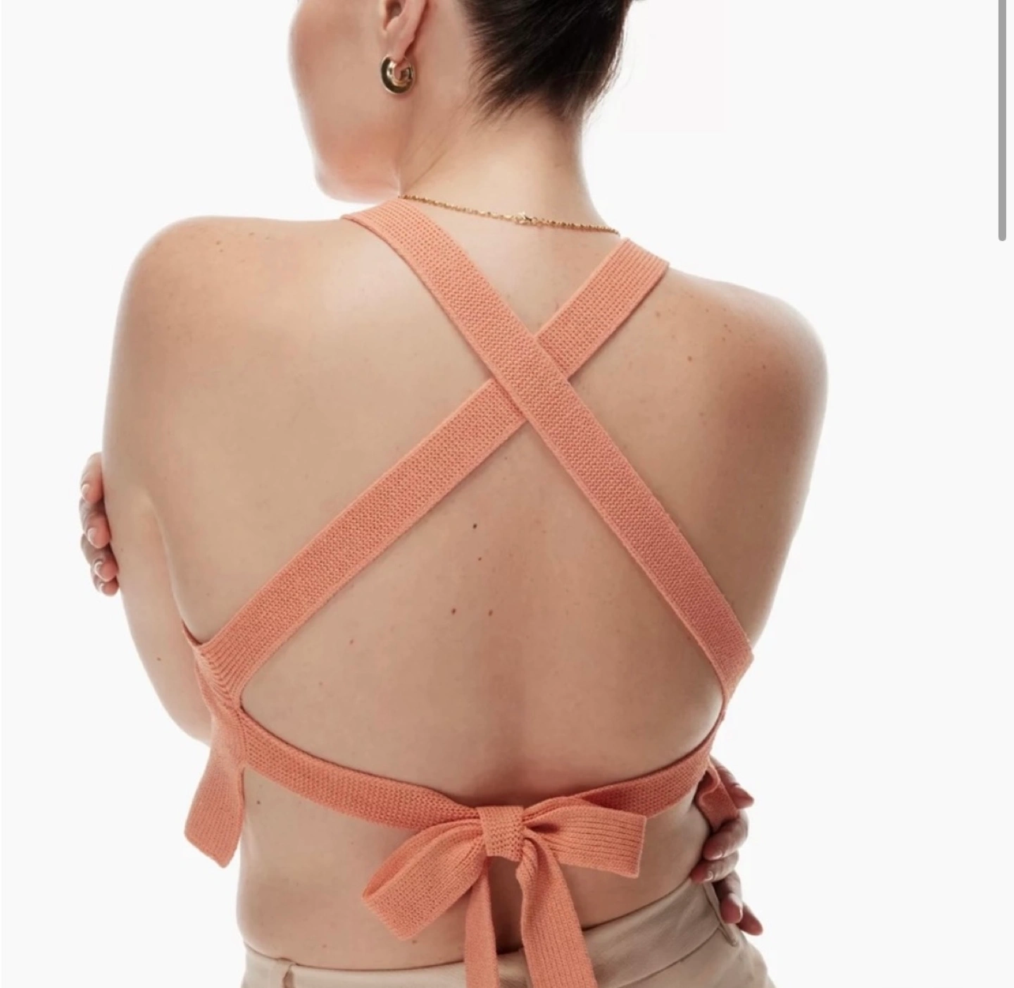 Pinky Peach Colour, criss-cross halter top with adjustable tie back to secure.