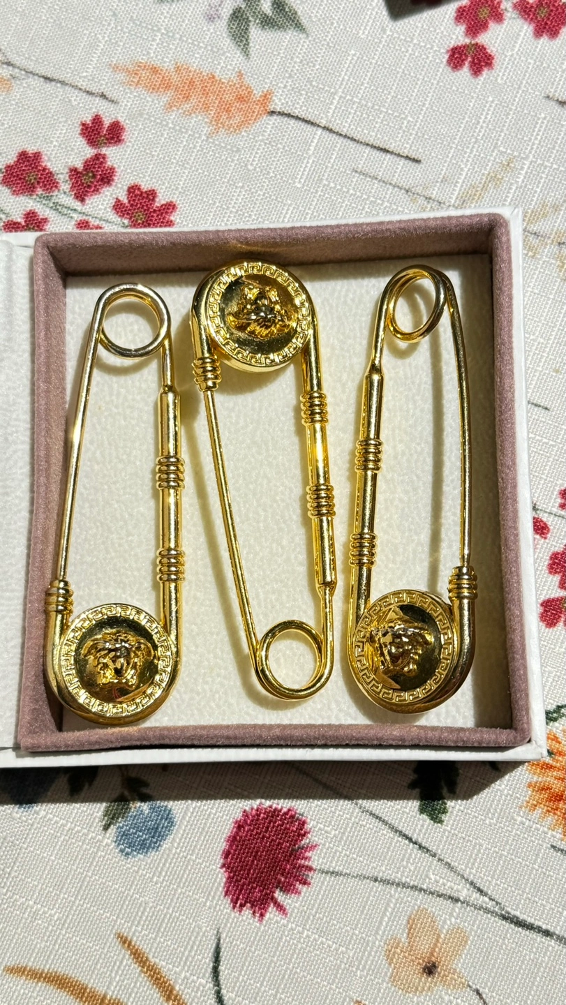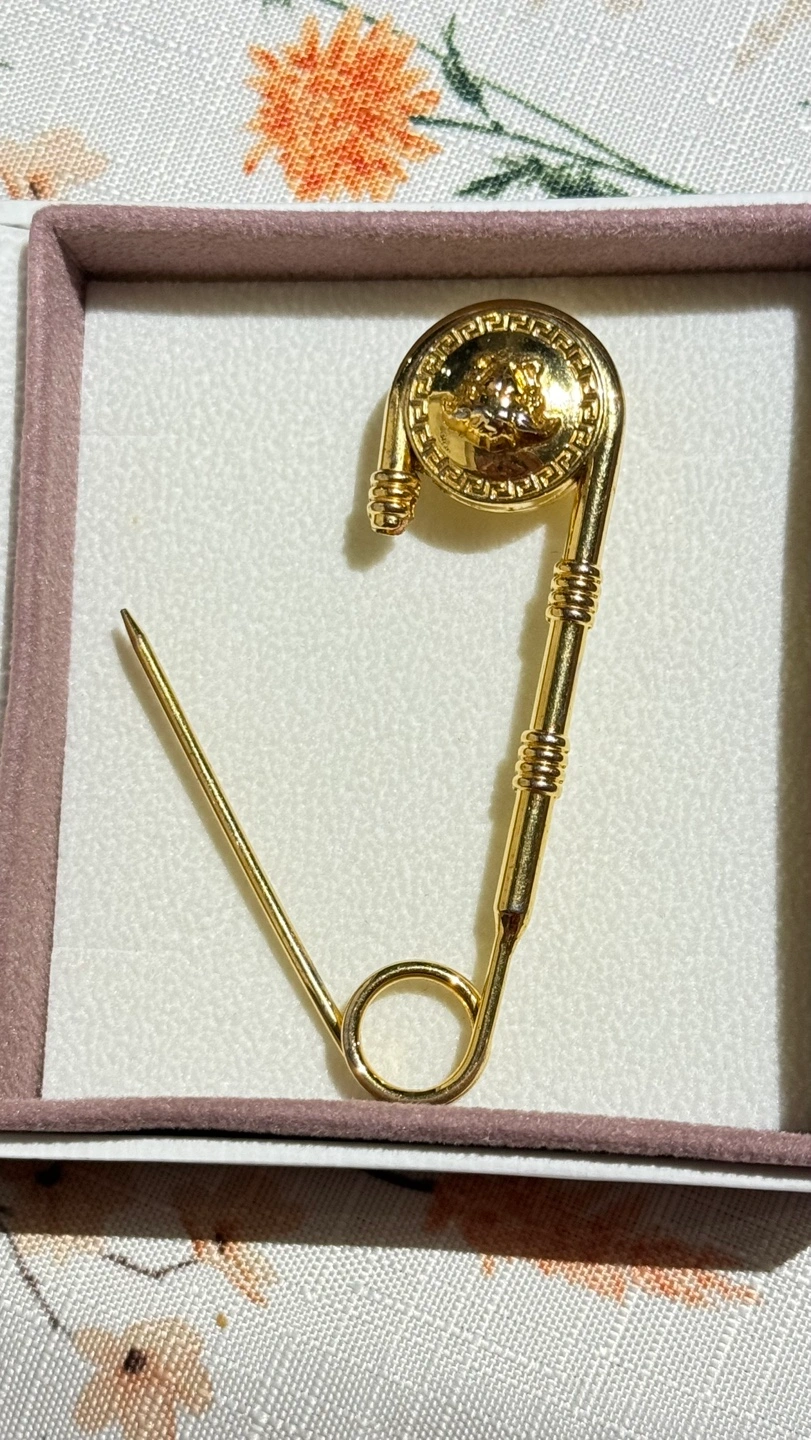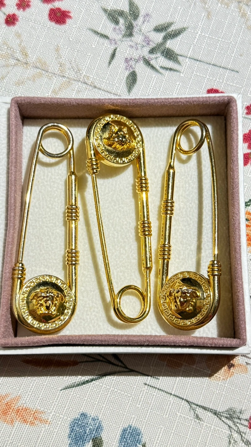 116Versace Versus Safety Pin Lion Head Gold Brooch. Sell 3 brooch Very good condition Location Etobicoke