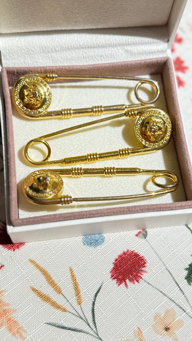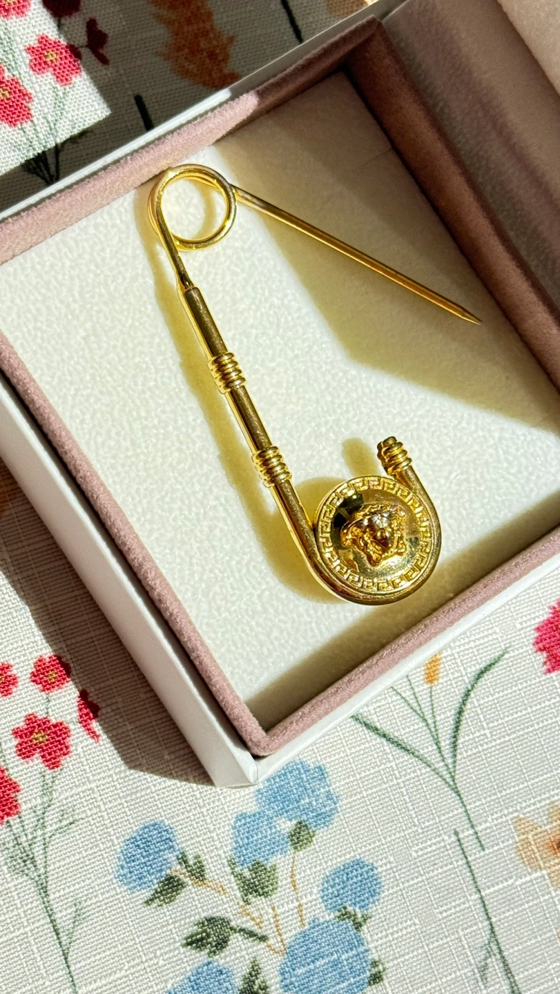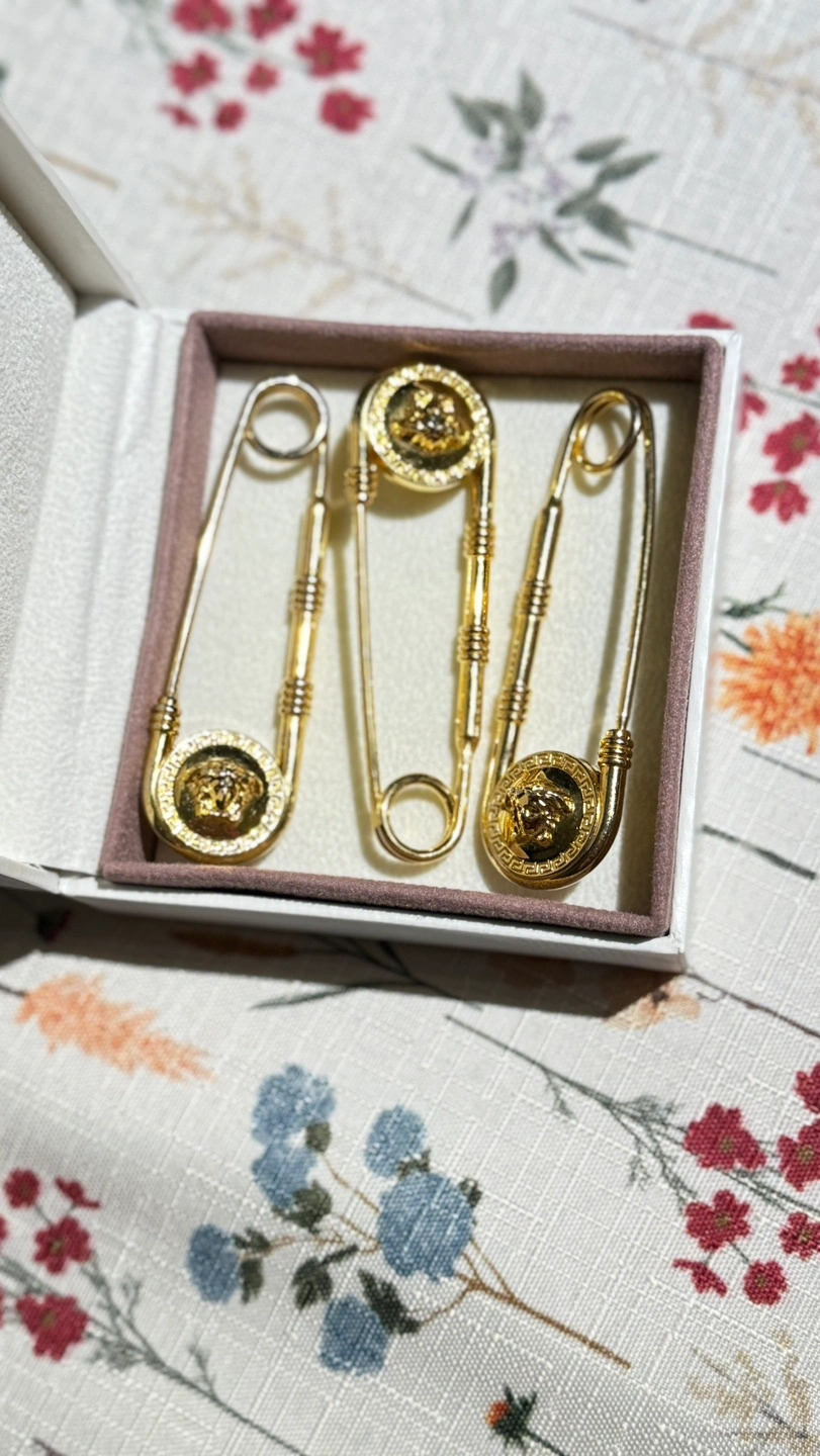 116Versace Versus Safety Pin Lion Head Gold Brooch. Sell 3 brooch Very good condition Location Etobicoke