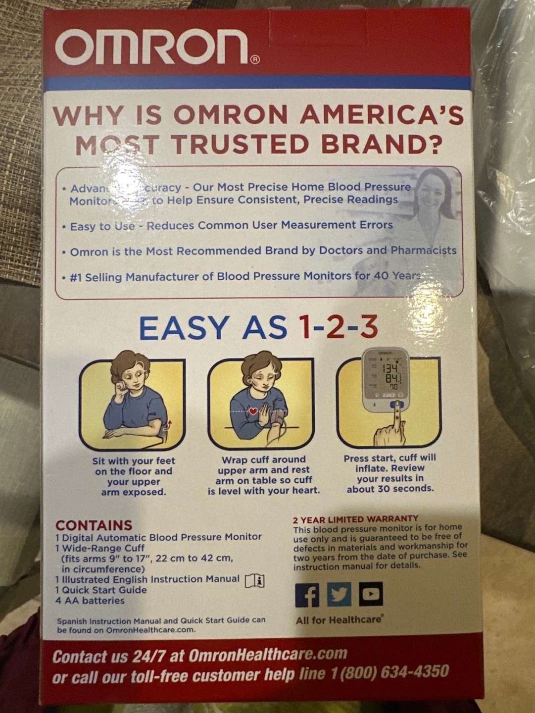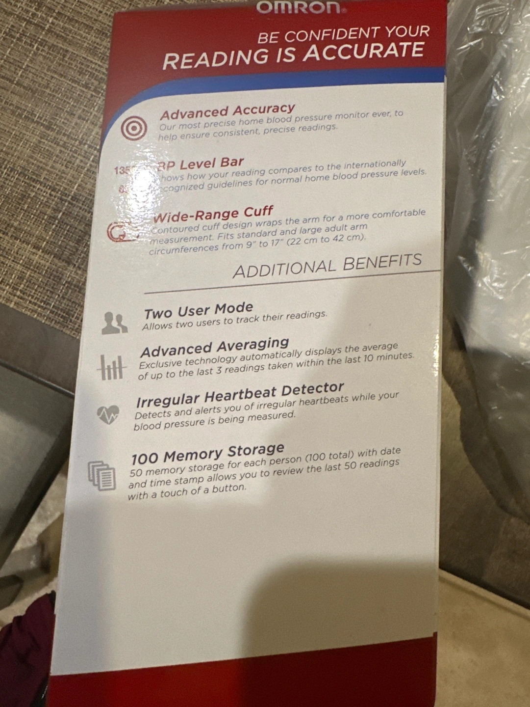Brand new - Blood pressure monitor with advanced accuracy, two user mode, advanced averaging, irregular heartbeat detector, 100 memory storage.
