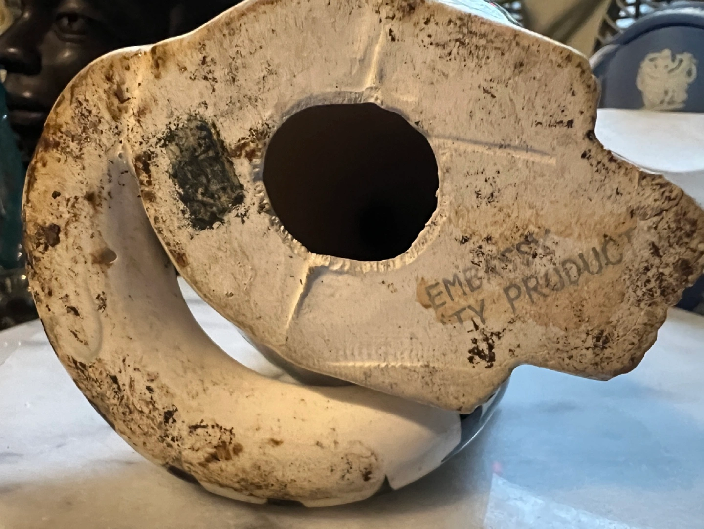 White porcelain cat figurine. She’s is a very sexy kitty that is sure to get attention when your friends visit. She could use a bath but I’ll leave that up to you.