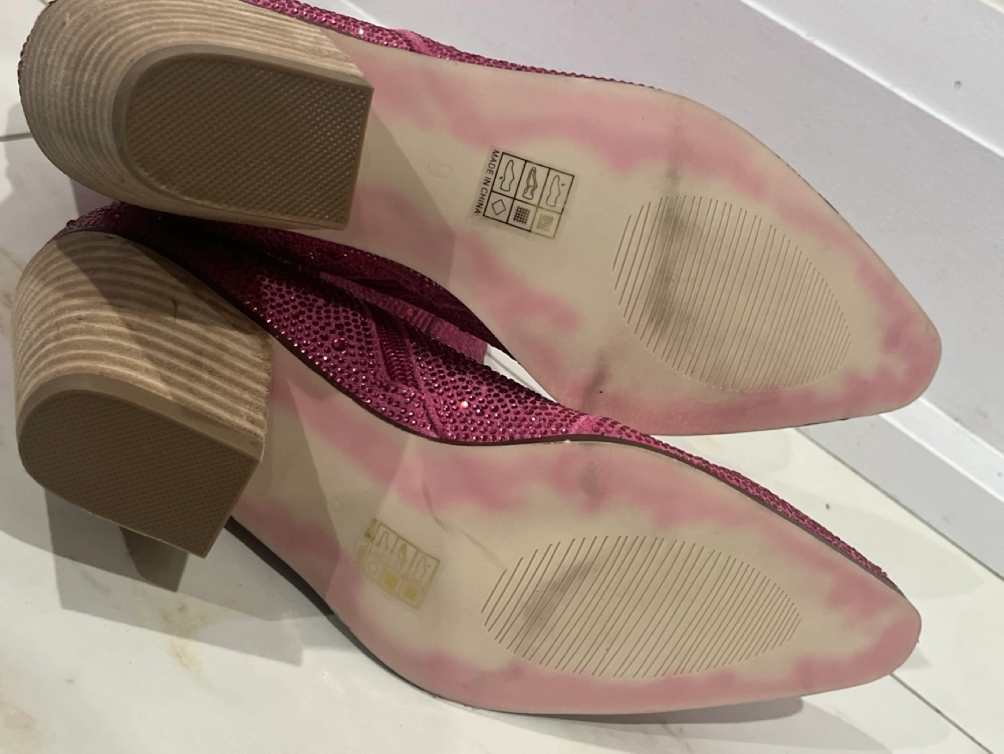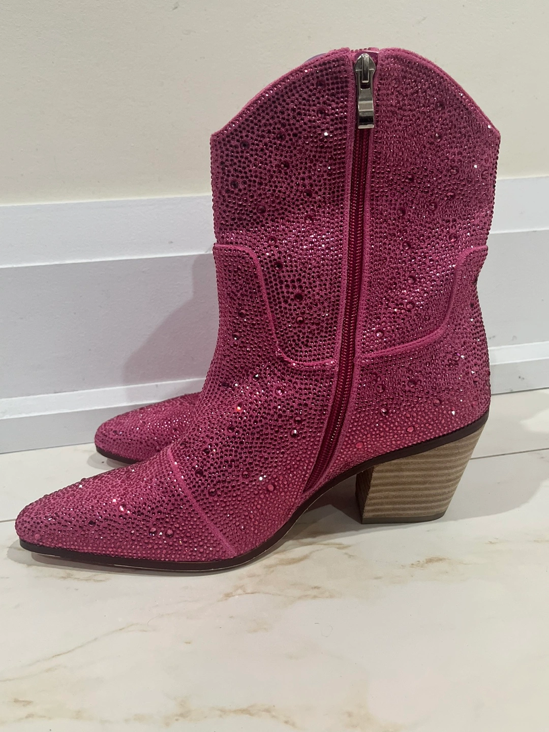 Women’s rhinestone cowboy style heeled boots sz 9 (pink)
