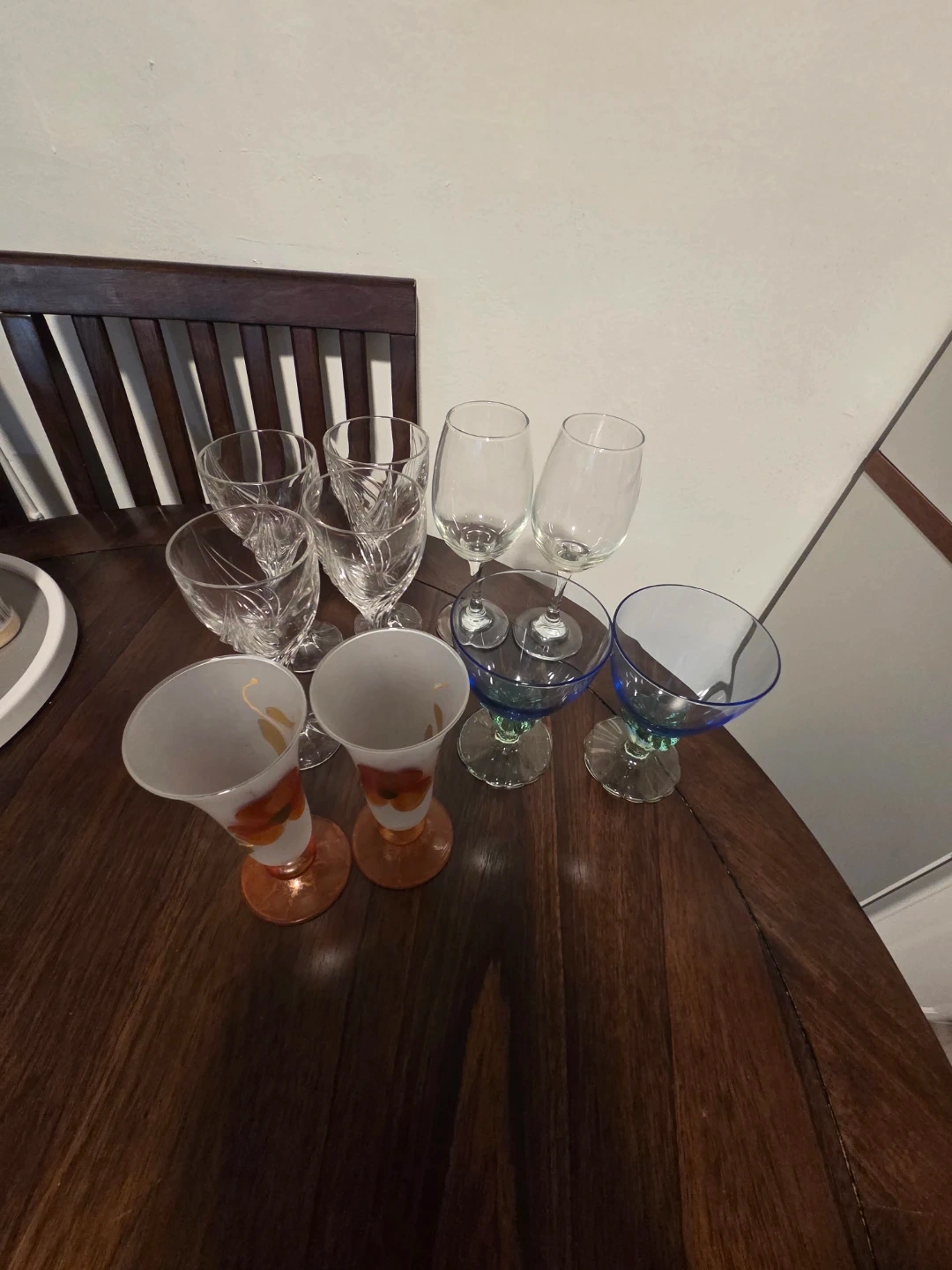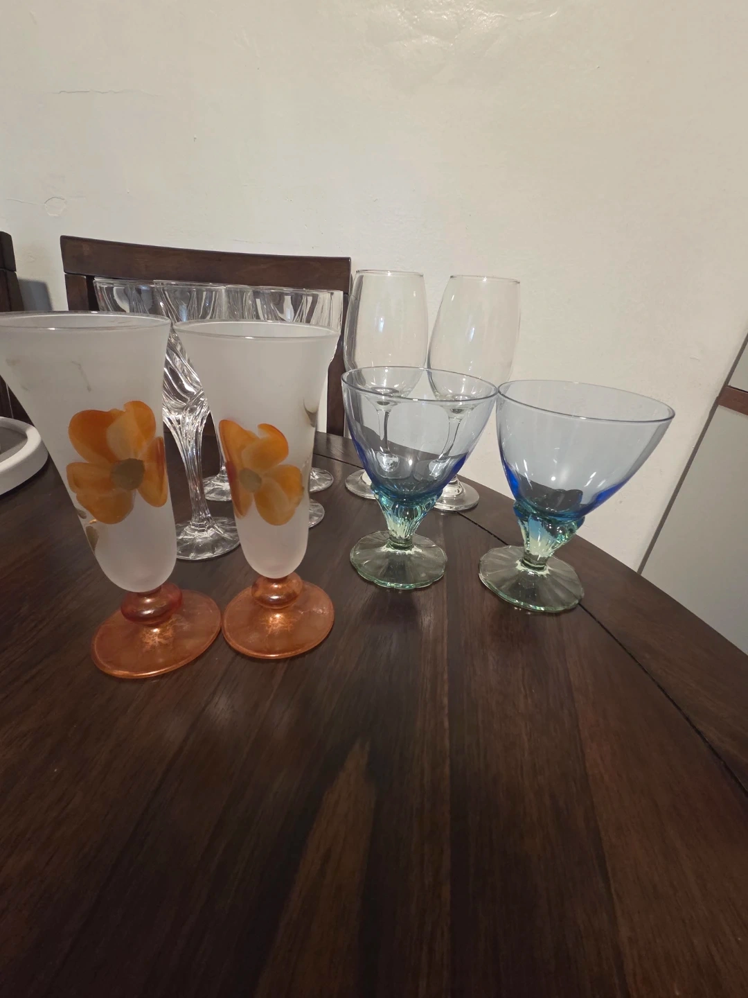 Assorted set of wine glasses and glass ice cream bowls. A practical and stylish mix, perfect for entertaining or everyday use. Classic shapes that pair well with any table setting.