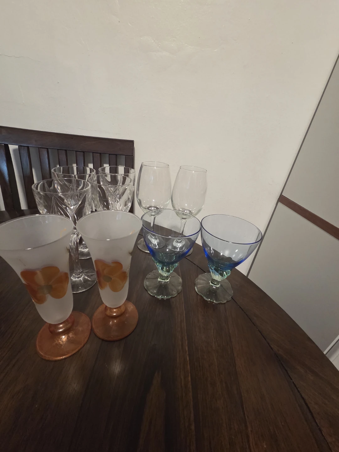 Assorted set of wine glasses and glass ice cream bowls. A practical and stylish mix, perfect for entertaining or everyday use. Classic shapes that pair well with any table setting.