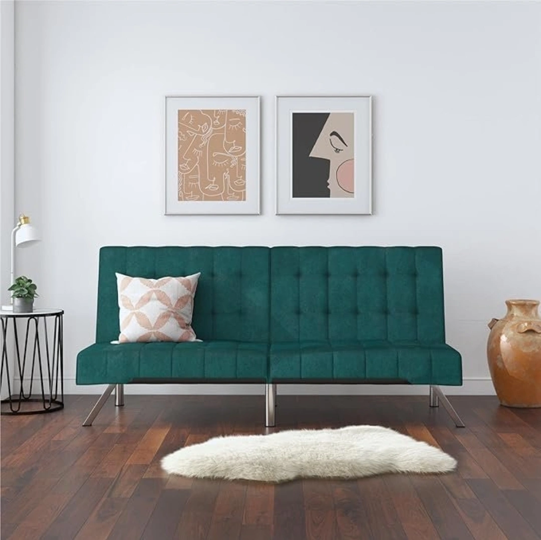 Stylish compact and cute green sofabed/futon/couch. It will become an accent of any room and will give you comfort of sitting or sleeping.